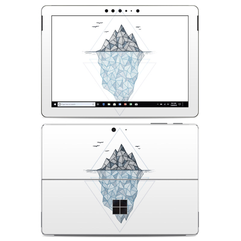 iStyles Microsoft Surface Go Skin design of Line, Illustration, Design, Symmetry, Pattern, Triangle, Art, with white, black, gray, blue colors, and tagged with animals, nature, patterns, arctic, blue, cold, frost, ice, iceberg, snow, winter.