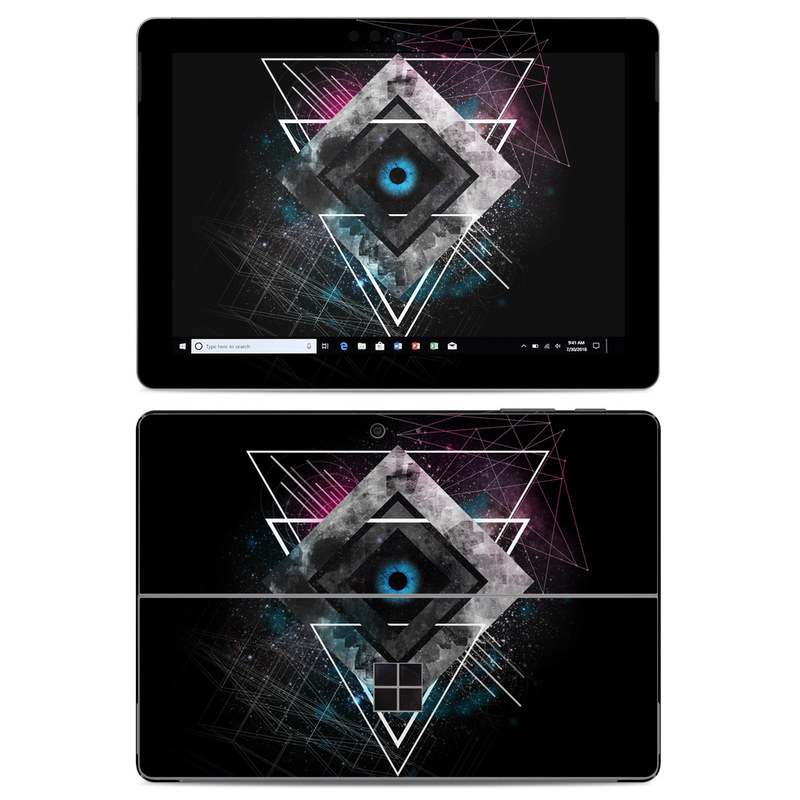 iStyles Microsoft Surface Go Skin design of Graphic design, Design, Pattern, Graphics, Illustration, Font, Circle, Triangle, Fractal art, Logo, with black, gray colors, and tagged with abstract, space.
