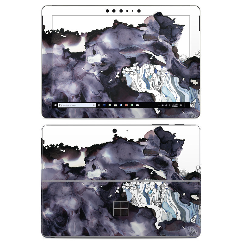 iStyles Microsoft Surface Go Skin design of Watercolor paint, Illustration, Art, World, Paint, Cg artwork, Drawing, Graphic design, Animation, Rock, with black, purple, white, blue colors, and tagged with abstract, nature, abstract, purple, watercolor.
