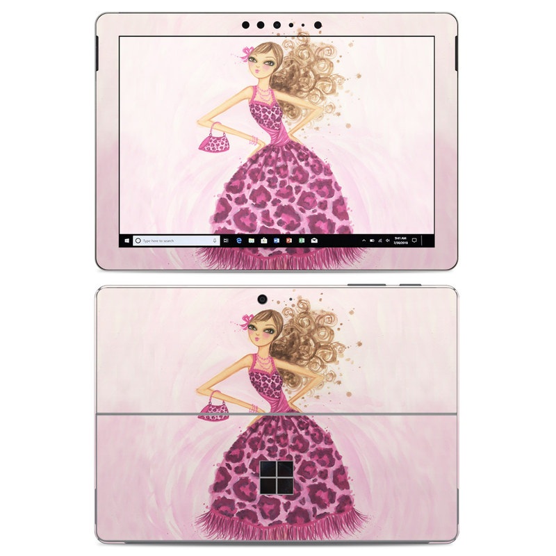 iStyles Microsoft Surface Go Skin design of Pink, Doll, Dress, Fashion illustration, Barbie, Fashion design, Illustration, Gown, Costume design, Toy, with pink, gray, red, purple, green colors, and tagged with people, objects, fashion.