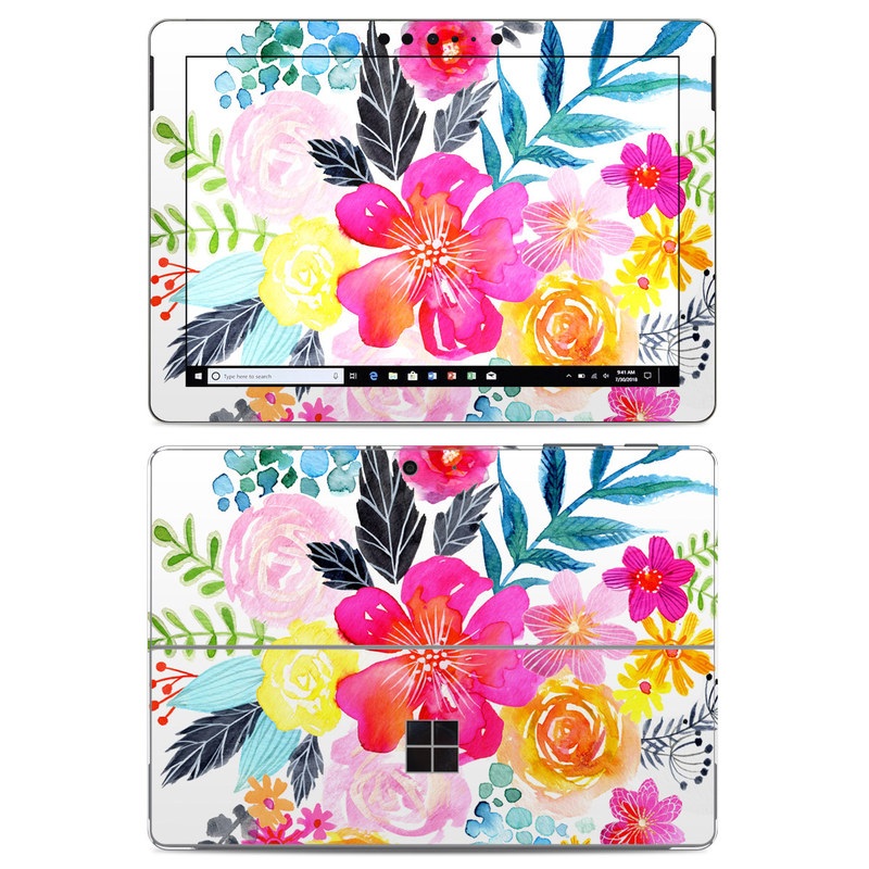iStyles Microsoft Surface Go Skin design of Flower, Clip art, Bouquet, Plant, Illustration, Floral design, Pink, Petal, Botany, Design, with white, pink, orange, red, yellow, blue, black, green colors, and tagged with flowers, patterns, bouquet, florals, flowers.