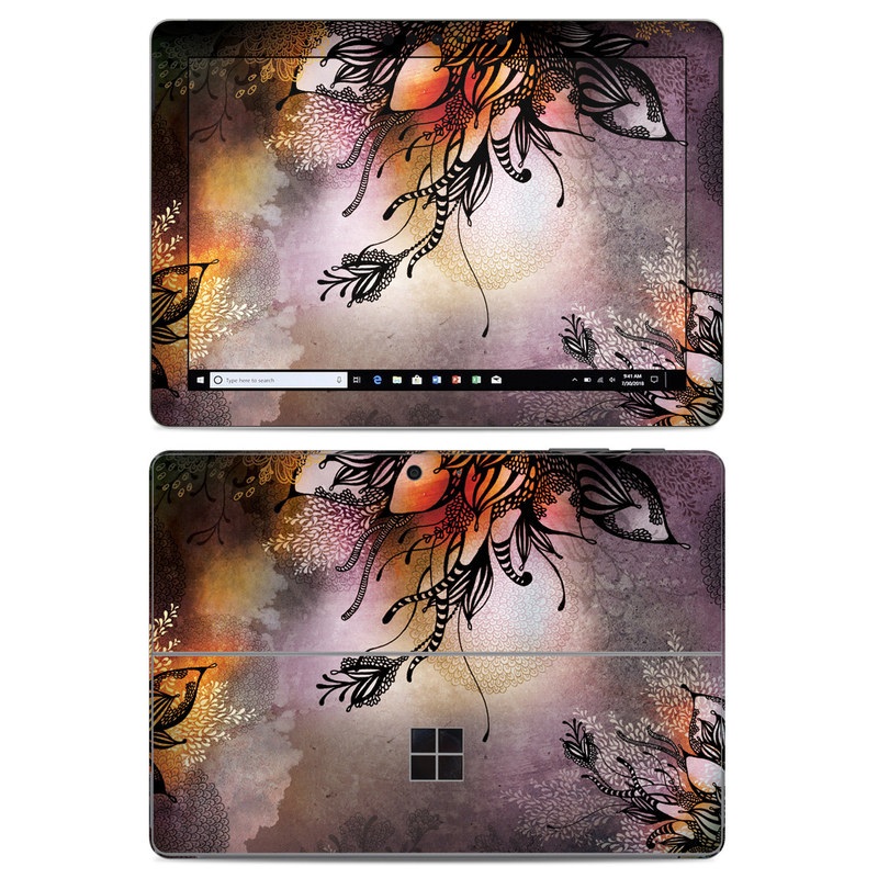 iStyles Microsoft Surface Go Skin design of Illustration, Graphic design, Cg artwork, Art, Fictional character, Graphics, Visual arts, Darkness, with black, gray, red, green, purple colors, and tagged with abstract, flowers.