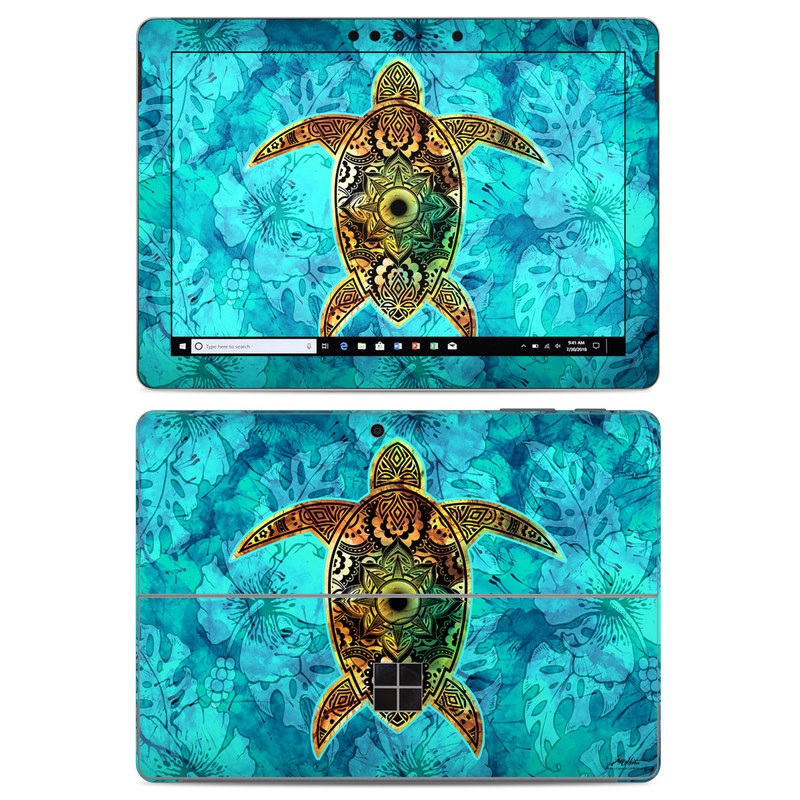 iStyles Microsoft Surface Go Skin design of Sea turtle, Green sea turtle, Turtle, Hawksbill sea turtle, Tortoise, Reptile, Loggerhead sea turtle, Illustration, Art, Pattern, with blue, black, green, gray, red colors, and tagged with animals.