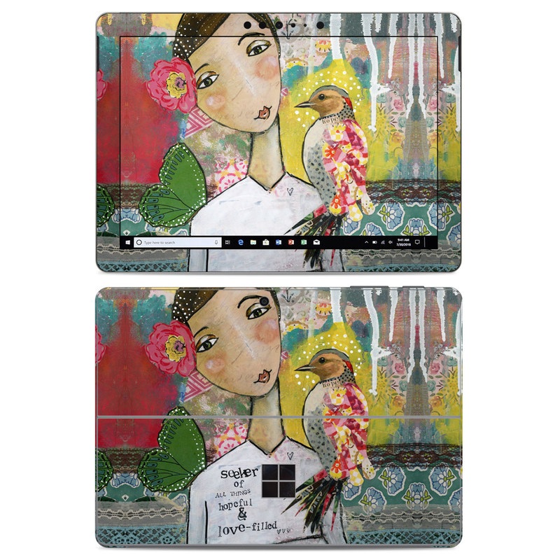 iStyles Microsoft Surface Go Skin design of Art, Painting, Illustration, Visual arts, Watercolor paint, Acrylic paint, Flower, Plant, Paint, Modern art, with white, green, pink, red, yellow colors, and tagged with signs, people, flowers, animals.