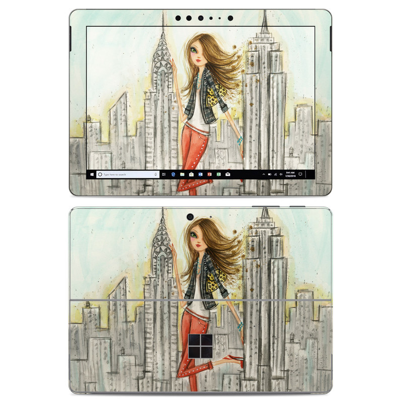 iStyles Microsoft Surface Go Skin design of Human settlement, Fashion illustration, Illustration, City, Art, Architecture, Drawing, Fictional character, with gray, green, black, red colors, and tagged with people, objects, urban, fashion, fineart.
