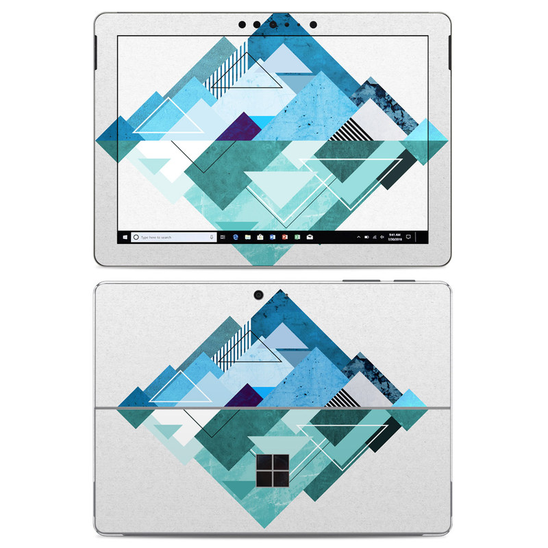 iStyles Microsoft Surface Go Skin design of Blue, Turquoise, Illustration, Graphic design, Design, Line, Logo, Triangle, Graphics, with gray, blue, purple colors, and tagged with patterns.