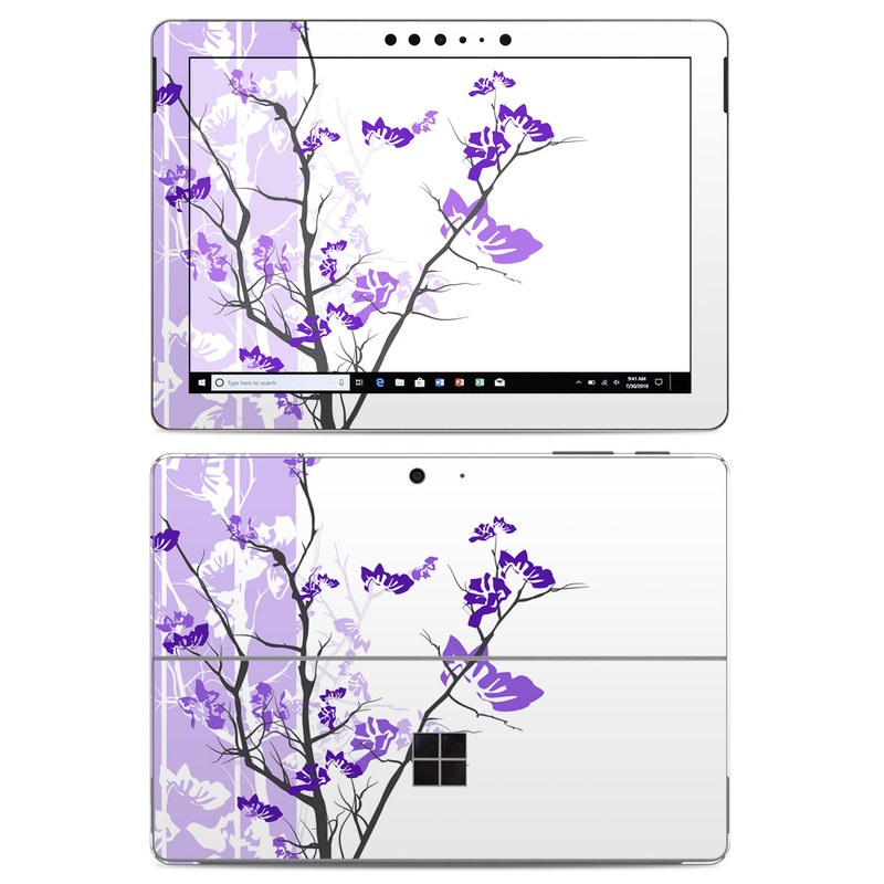 iStyles Microsoft Surface Go Skin design of Branch, Purple, Violet, Lilac, Lavender, Plant, Twig, Flower, Tree, Wildflower, with white, purple, gray, pink, black colors, and tagged with flowers.