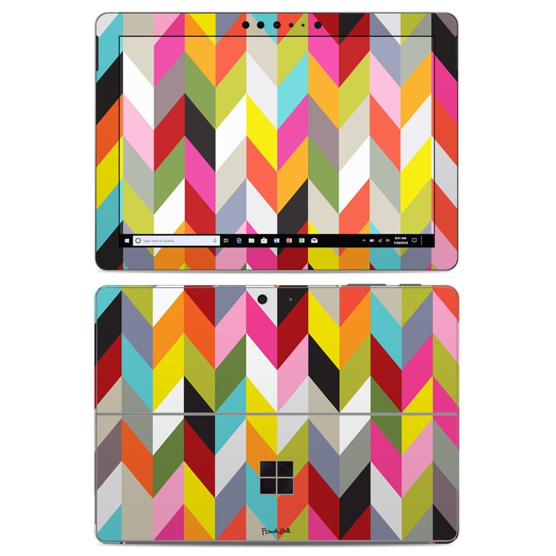 iStyles Microsoft Surface Go Skin design of Pattern, Orange, Line, Design, Graphic design, Tints and shades, Triangle, with red, green, gray, black, blue, purple colors, and tagged with patterns.