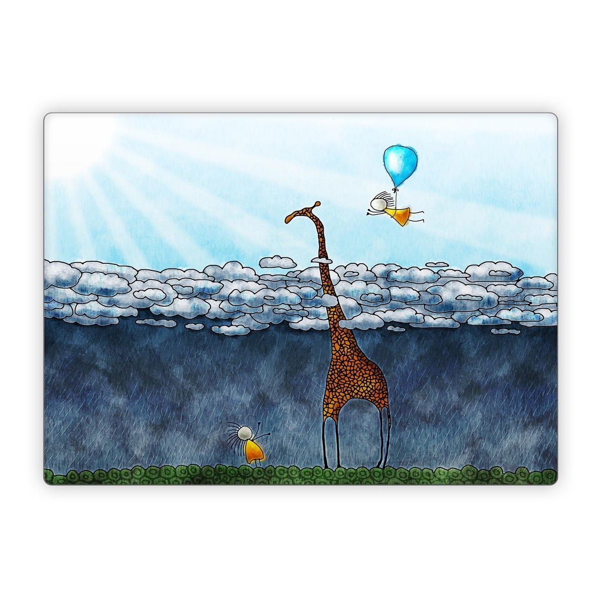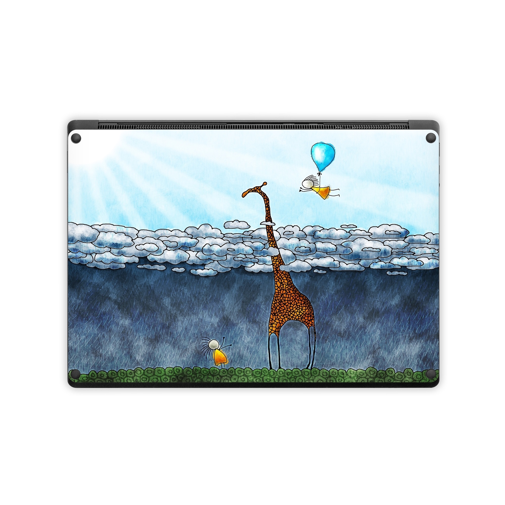 iStyles Microsoft Surface Laptop Series Skin design of Giraffe, Sky, Tree, Water, Branch, Giraffidae, Illustration, Cloud, Grassland, Bird, with blue, gray, yellow, green colors, and tagged with animals, nature, objects.