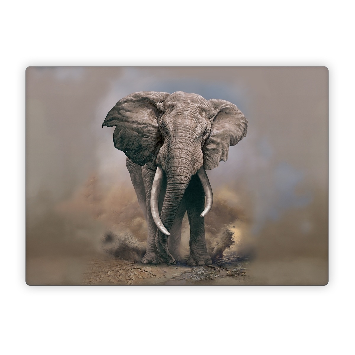 iStyles Microsoft Surface Laptop Series Skin design of Elephants and Mammoths, Terrestrial animal, Indian elephant, African elephant, Wildlife, Tusk, Snout, Organism, Working animal, Illustration, with brown, gray, white colors, and tagged with animals, animals, elephant, nature.