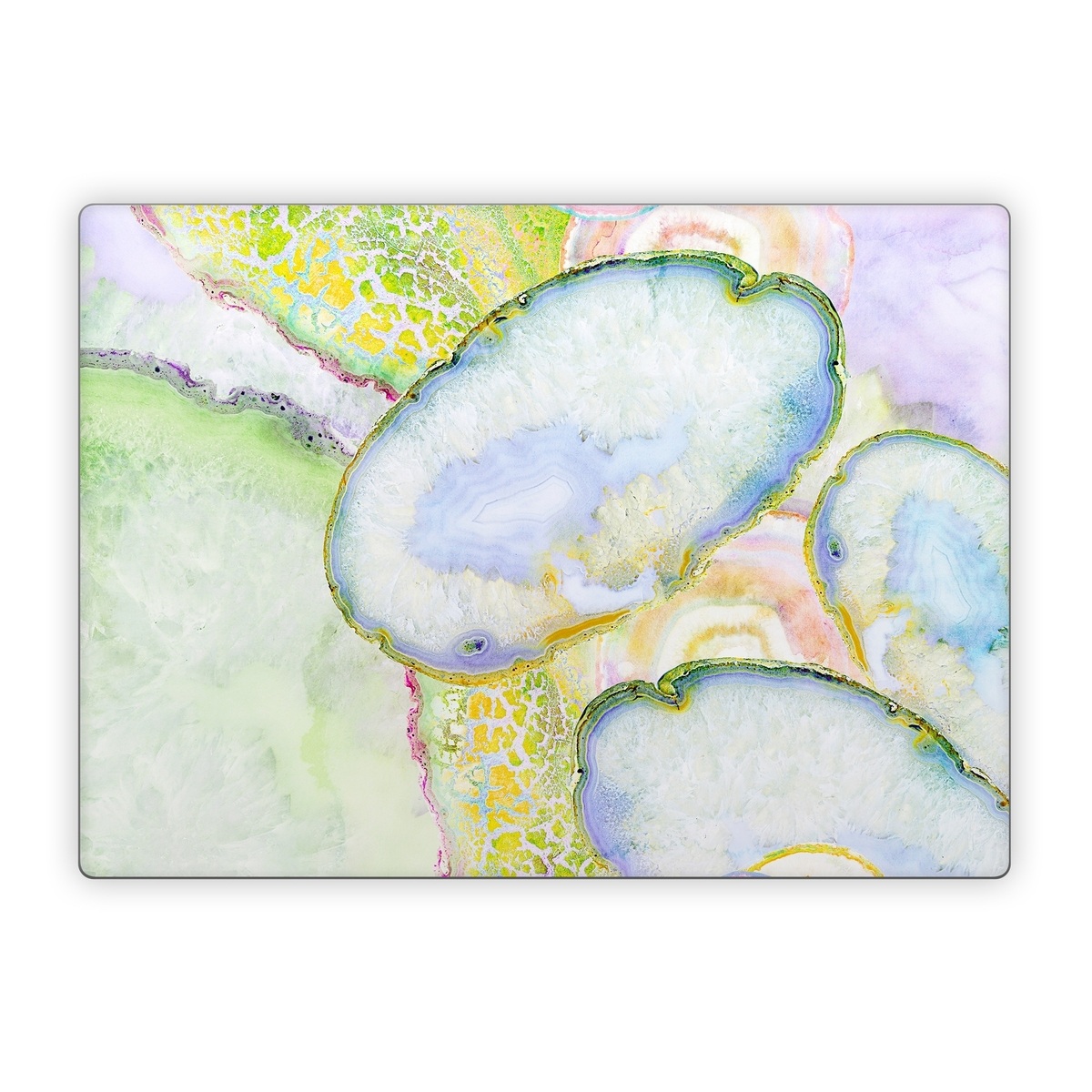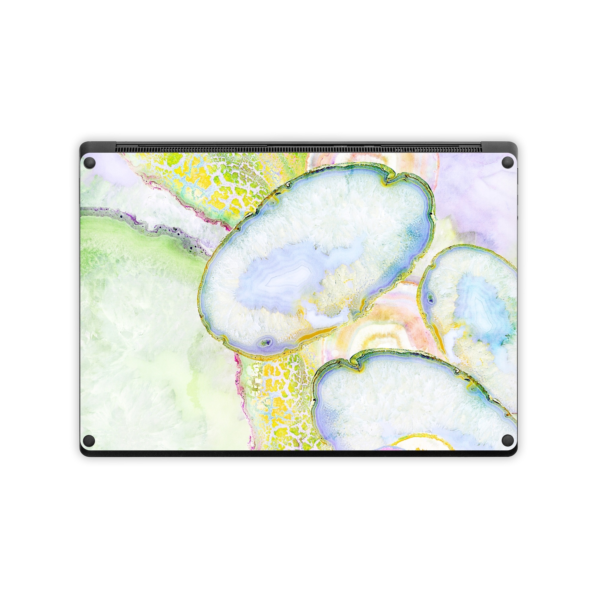 iStyles Microsoft Surface Laptop Series Skin design of Watercolor paint, Illustration, Paint, Child art, Art, with blue, purple, green, yellow, pink colors, and tagged with abstract, nature, objects, agate, gems, nature, opal, rock, stone.