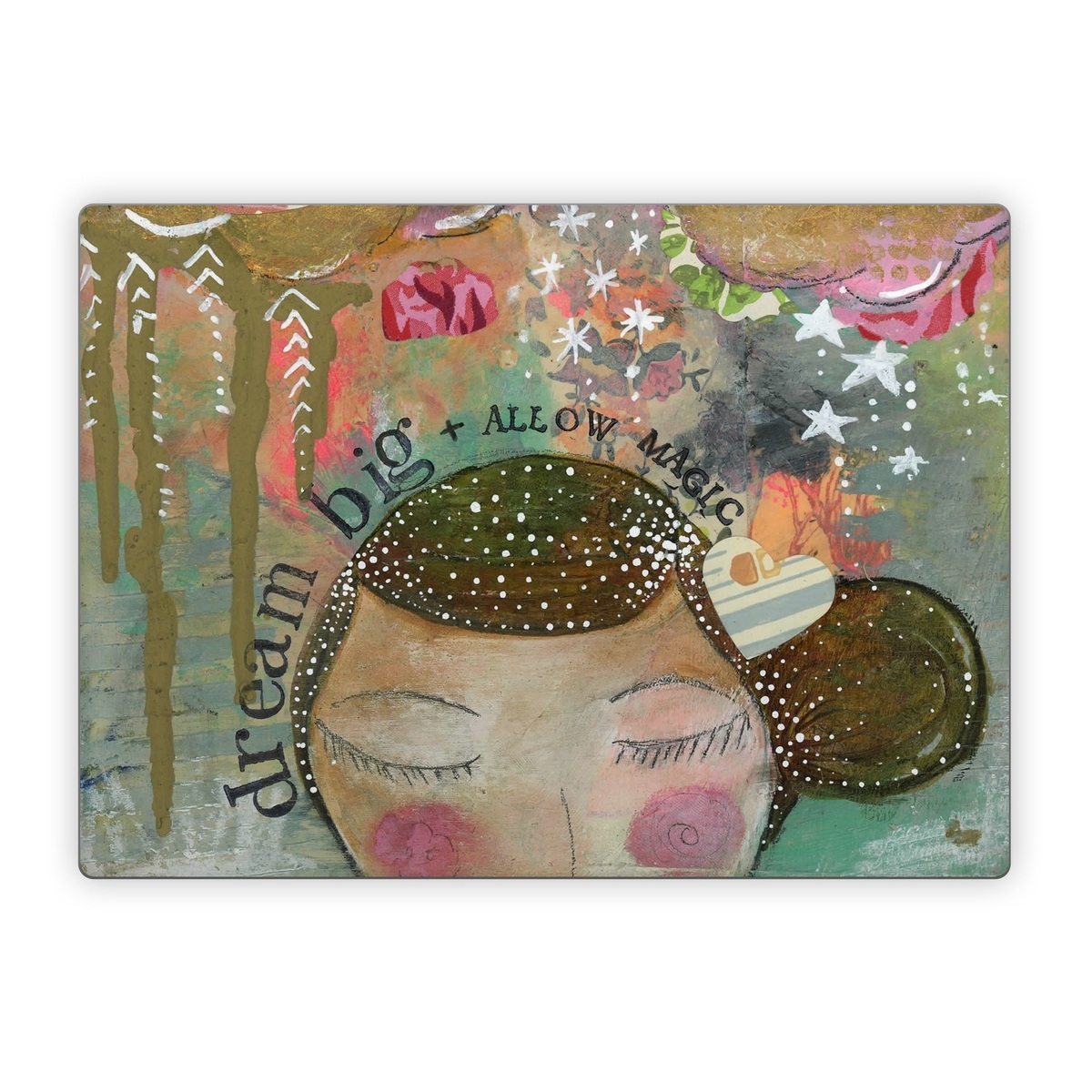 iStyles Microsoft Surface Laptop Series Skin design of Painting, Pink, Illustration, Art, Child art, Watercolor paint, Drawing, Visual arts, Still life, with brown, pink, red, green, white, black, orange, gray colors, and tagged with flowers, signs, people, dream, flowers, magic, nature, painting.