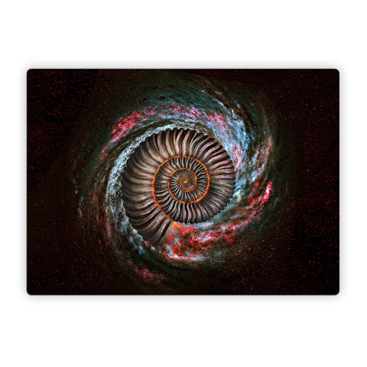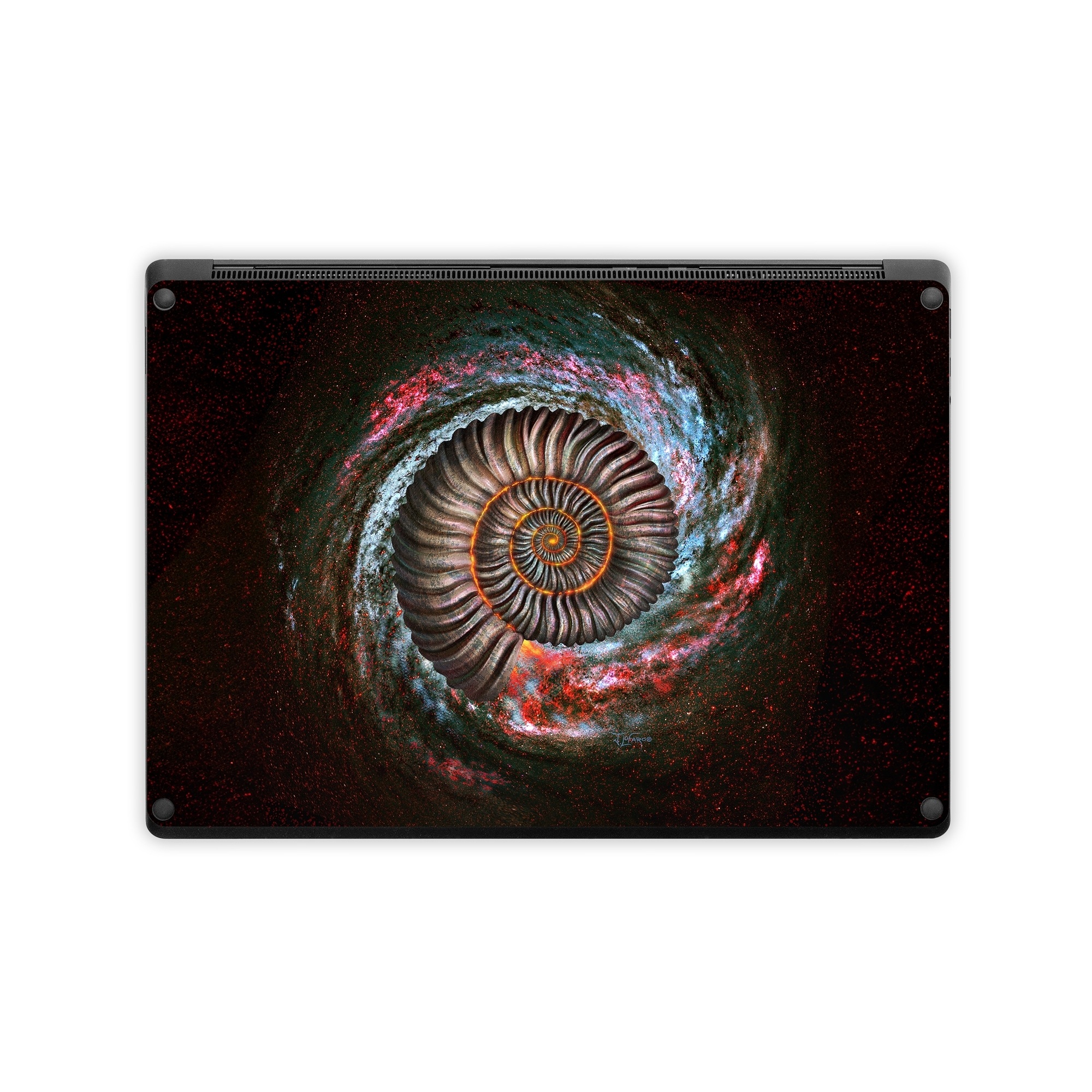 iStyles Microsoft Surface Laptop Series Skin design of Spiral, Fractal art, Vortex, Circle, Art, Ammonoidea, with black, brown, red, white, blue, green colors, and tagged with animals, patterns, space, celestial, galactic, galaxy, outerspace, sci-fi.