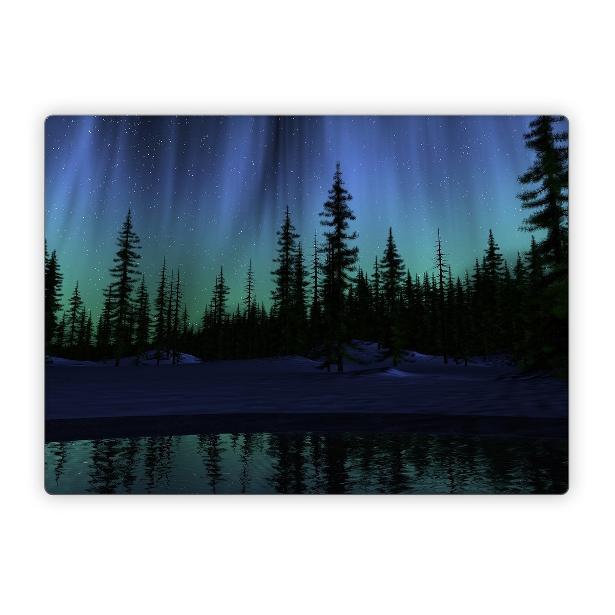 iStyles Microsoft Surface Laptop Series Skin design of Aurora, Nature, Sky, shortleaf black spruce, Natural landscape, Tree, Wilderness, Natural environment, Biome, Spruce-fir forest, with blue, purple, green, black colors, and tagged with nature, photos.