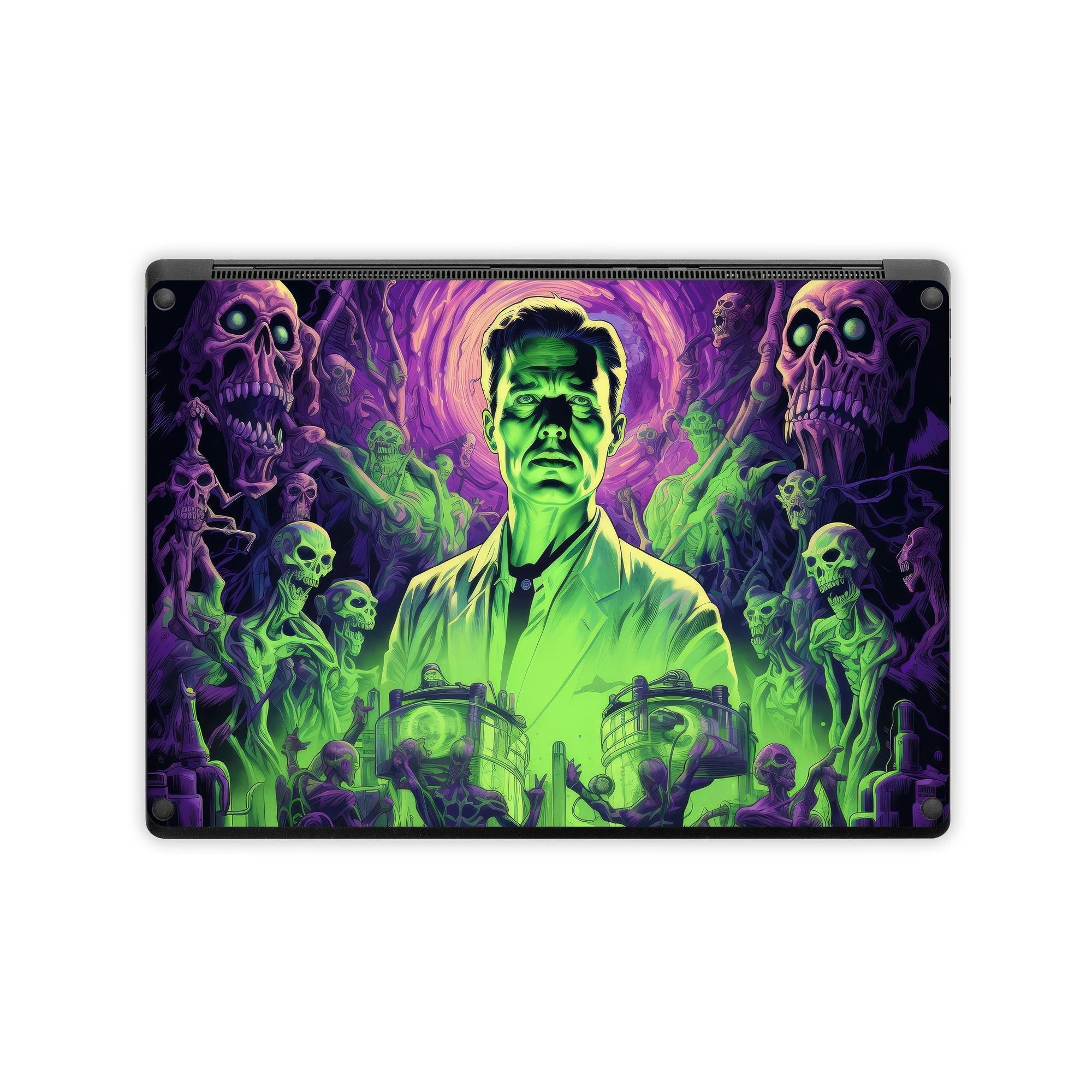iStyles Microsoft Surface Laptop Series Skin design of Art, Cool, Fictional character, Illustration, Painting, Electric blue, Visual arts, Artist, Event, Drawing, with black, green, purple colors, and tagged with skulls, people, animals, halloween, zombie, scary.