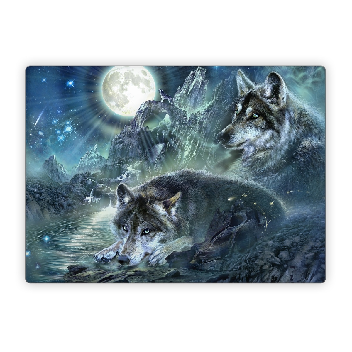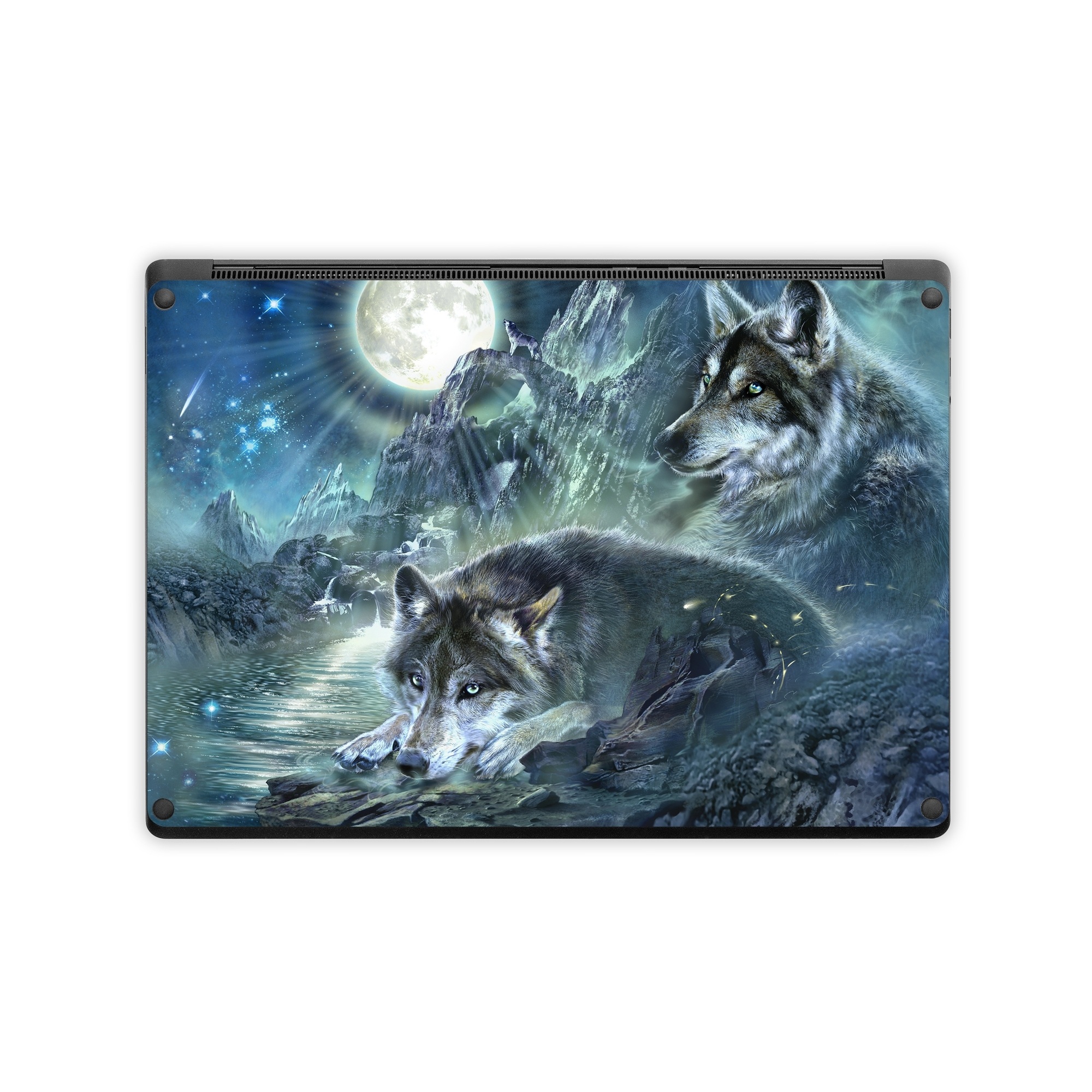 iStyles Microsoft Surface Laptop Series Skin design of Cg artwork, Fictional character, Darkness, Werewolf, Illustration, Wolf, Mythical creature, Graphic design, Dragon, Mythology, with black, blue, gray, white colors, and tagged with animals, space.
