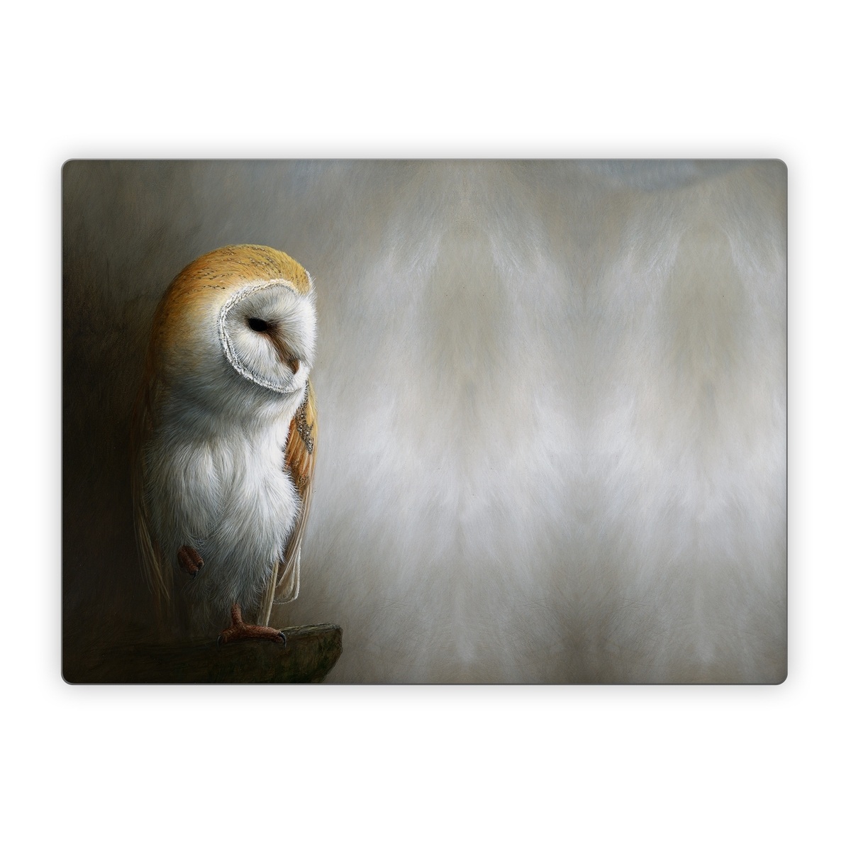 iStyles Microsoft Surface Laptop Series Skin design of Barn owl, Owl, Bird, Bird of prey, Beak, Wildlife, with yellow, white, orange, brown colors, and tagged with animals.