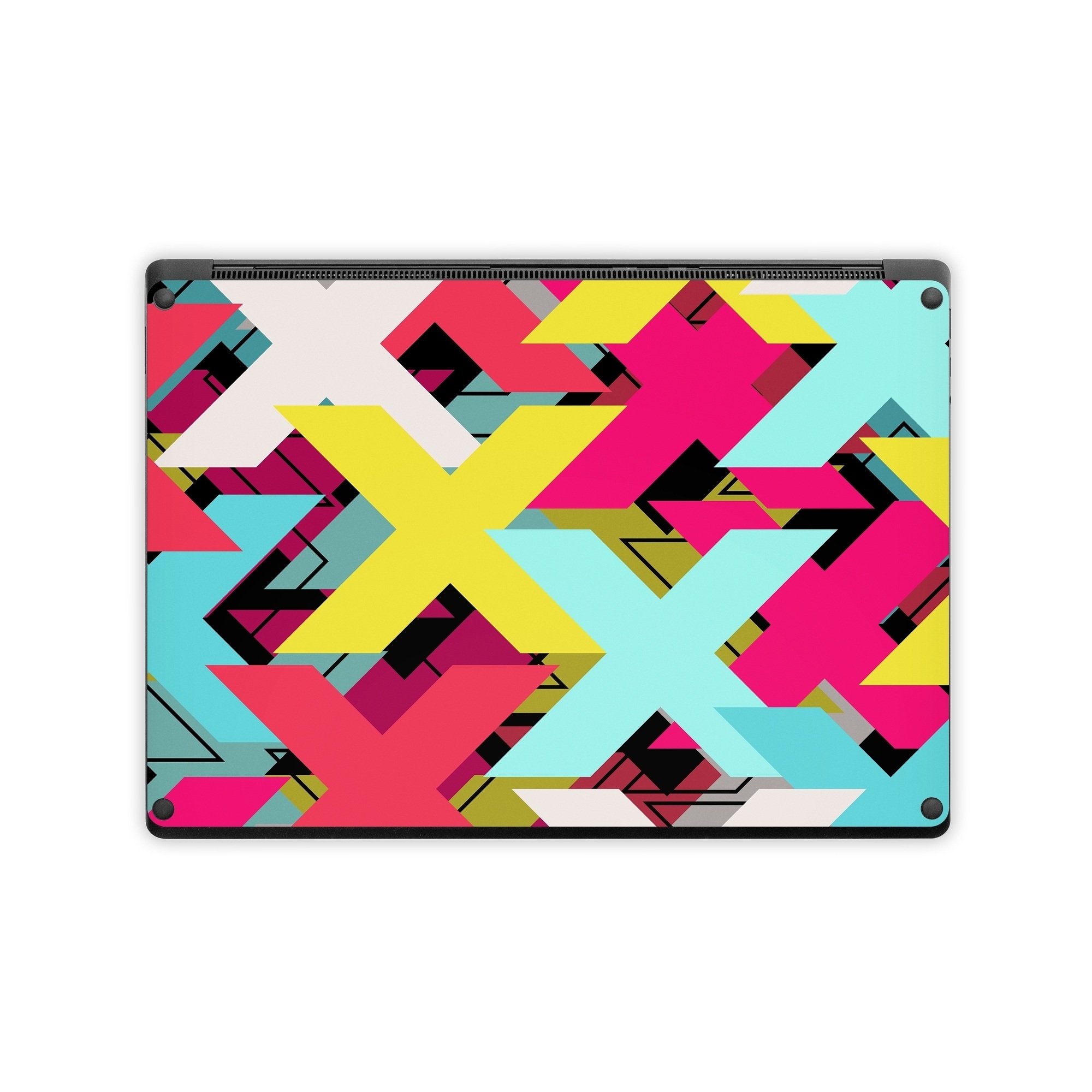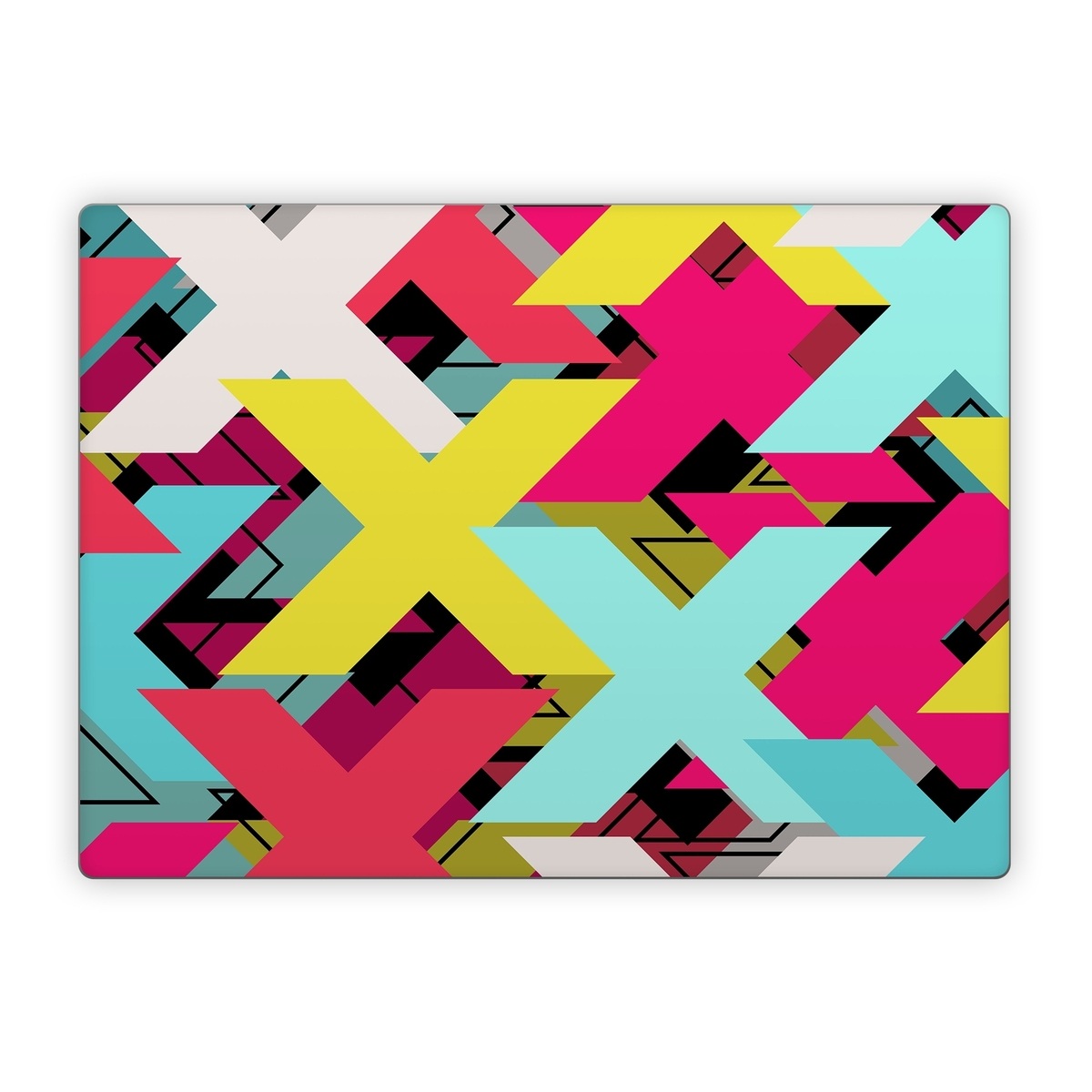 iStyles Microsoft Surface Laptop Series Skin design of Pattern, Graphic design, Line, Design, Triangle, Font, Illustration, Magenta, Visual arts, with yellow, blue, white, black, red, pink colors, and tagged with patterns, signs.