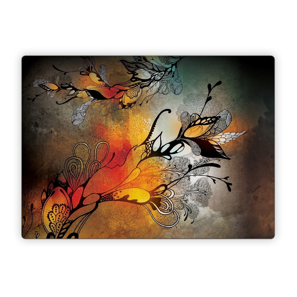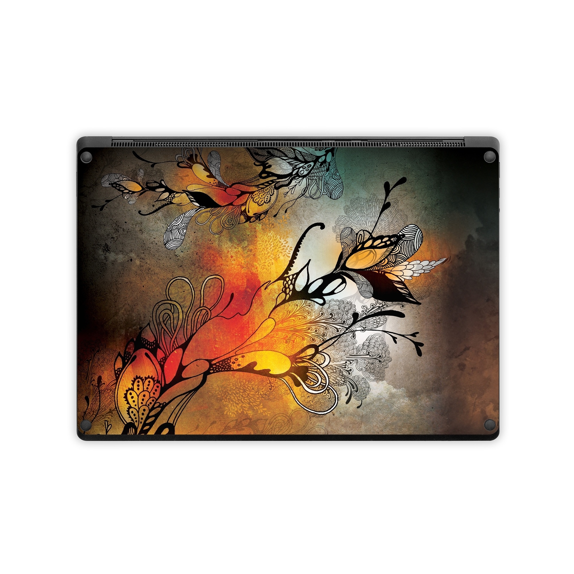 iStyles Microsoft Surface Laptop Series Skin design of Yellow, Orange, Art, Branch, Leaf, Graphic design, Visual arts, Pattern, Design, Modern art, with black, red, orange, yellow colors, and tagged with abstract.