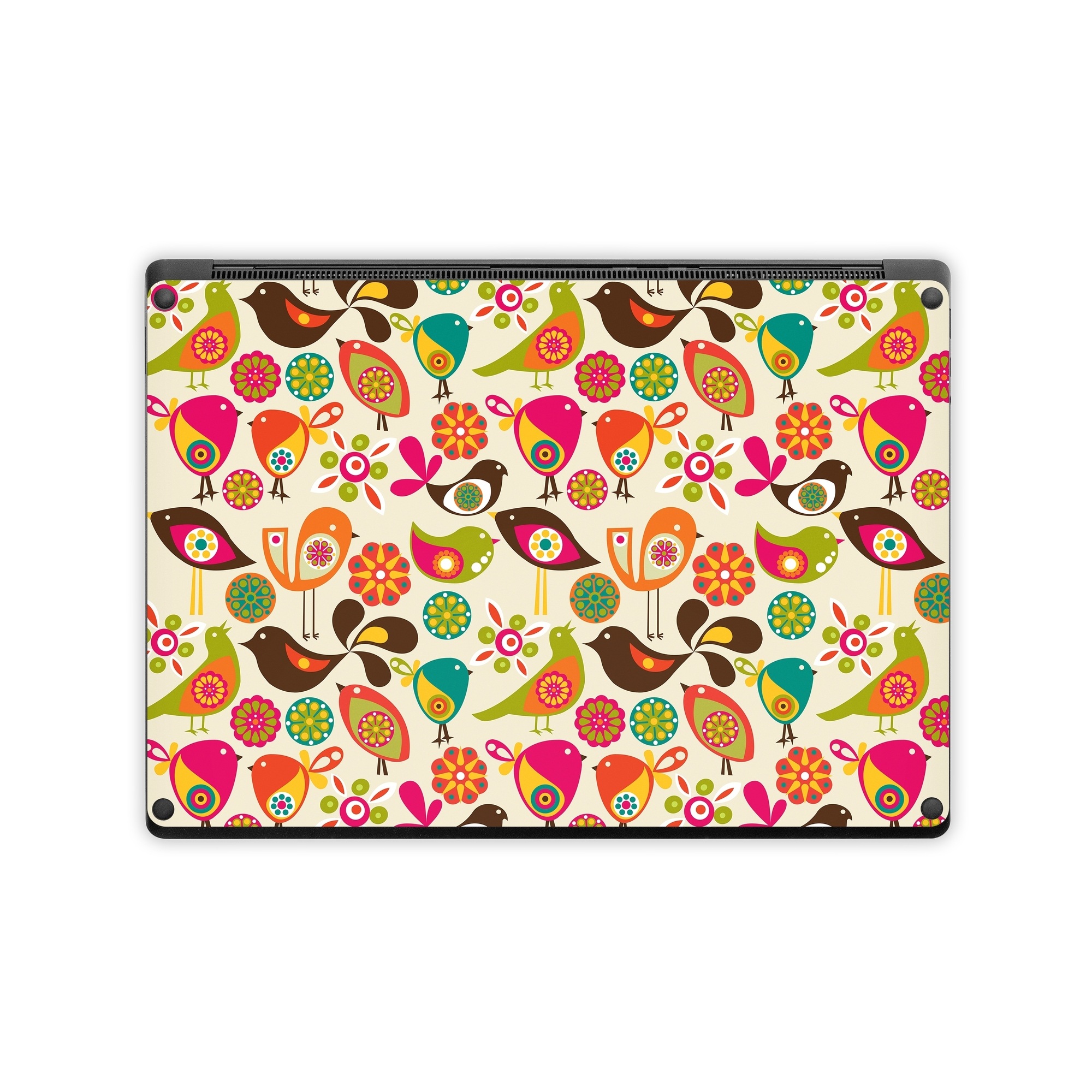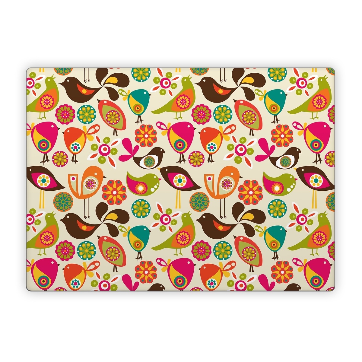 iStyles Microsoft Surface Laptop Series Skin design of Pattern, Visual arts, Wrapping paper, Design, Clip art, Textile, Motif, Sticker, Graphics, with yellow, pink, orange, green, brown, blue colors, and tagged with patterns, animals, flowers.