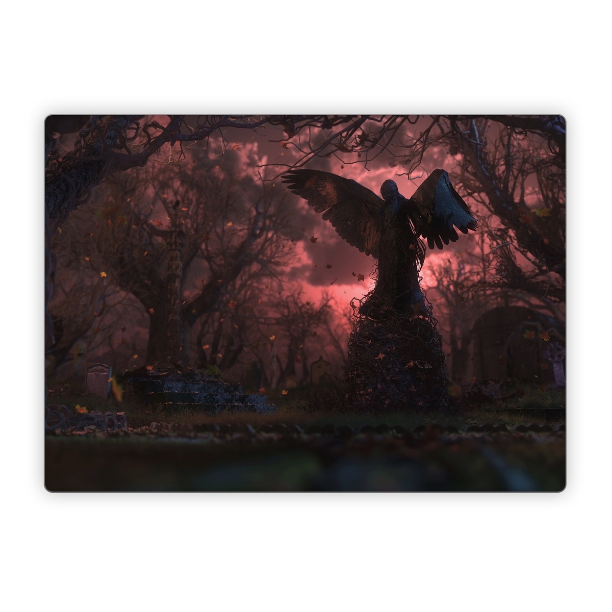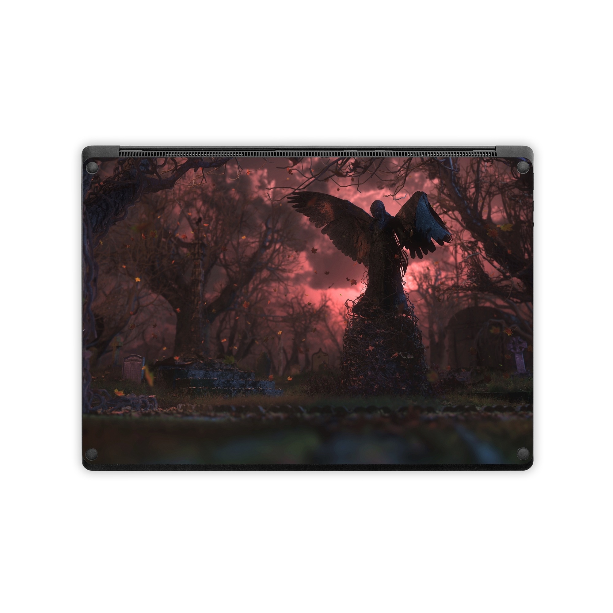 iStyles Microsoft Surface Laptop Series Skin design of Nature, Sky, Atmospheric phenomenon, Tree, Atmosphere, Darkness, Night, Screenshot, Cg artwork, Fictional character, with black, red colors, and tagged with fantasy, nature.