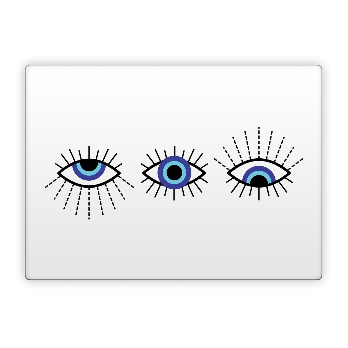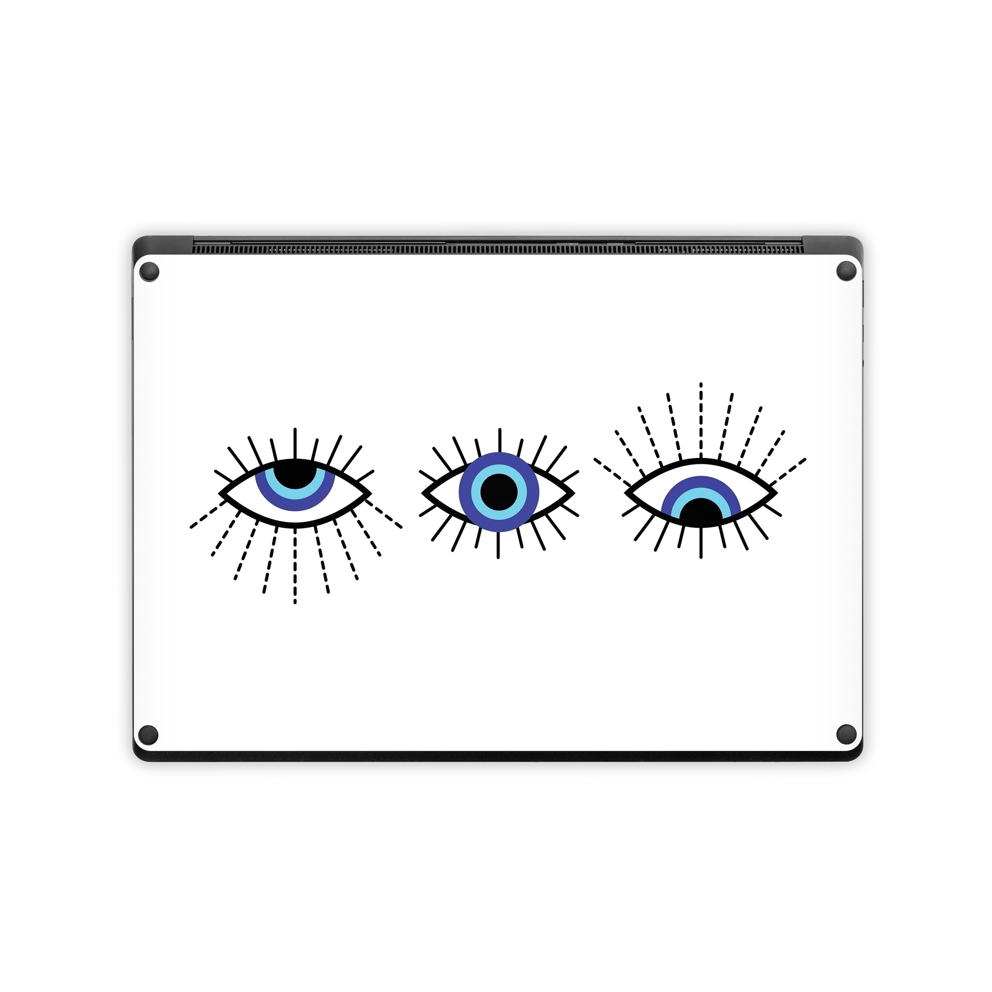 iStyles Microsoft Surface Laptop Series Skin design of Eyebrow, Eyelash, Iris, Art, Font, Circle, Electric blue, Symmetry, Illustration, Graphics, with black, white, blue, purple colors, and tagged with signs, people, blue, evileye, eye.