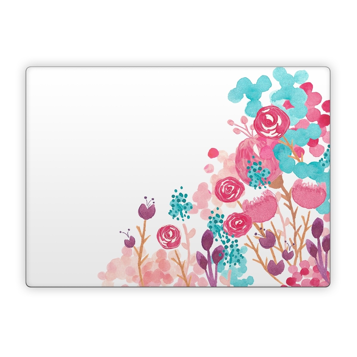 iStyles Microsoft Surface Laptop Series Skin design of Pink, Pattern, Design, Illustration, Clip art, Plant, Graphics, Art, with white, pink, purple, blue, red colors, and tagged with flowers.