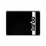 iStyles Microsoft Surface Laptop Series Skin design of Font, Tints and shades, Rectangle, Electric blue, Logo, Brand, Graphics, Pattern, Darkness, Monochrome photography, with black, white colors, and tagged with signs, lookslike, turbo, racecar.