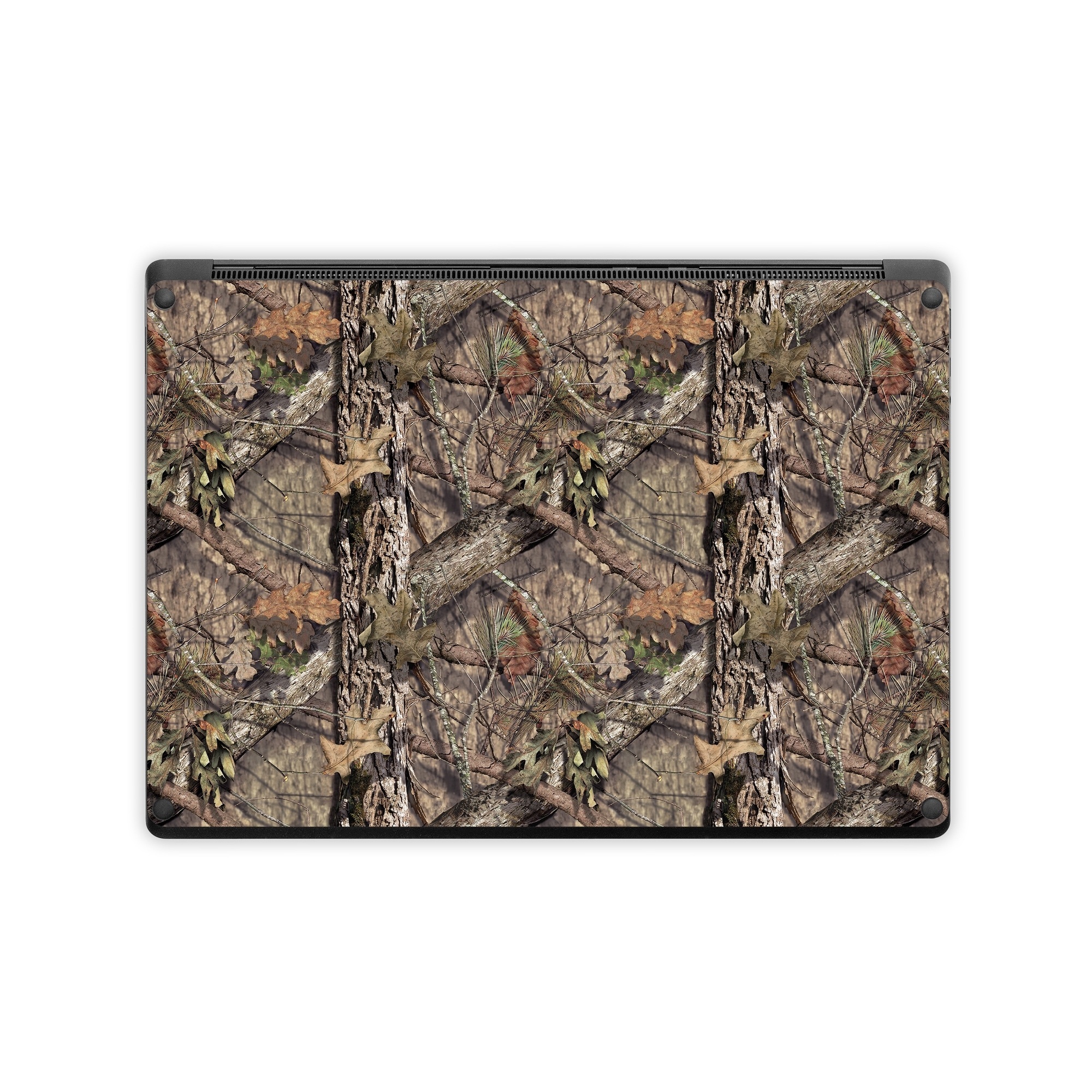 iStyles Microsoft Surface Laptop Series Skin design of shellbark hickory, Camouflage, Tree, Branch, Trunk, Plant, Leaf, Adaptation, Wood, Twig, with orange, green, red, black, gray colors, and tagged with nature, signs, patterns.