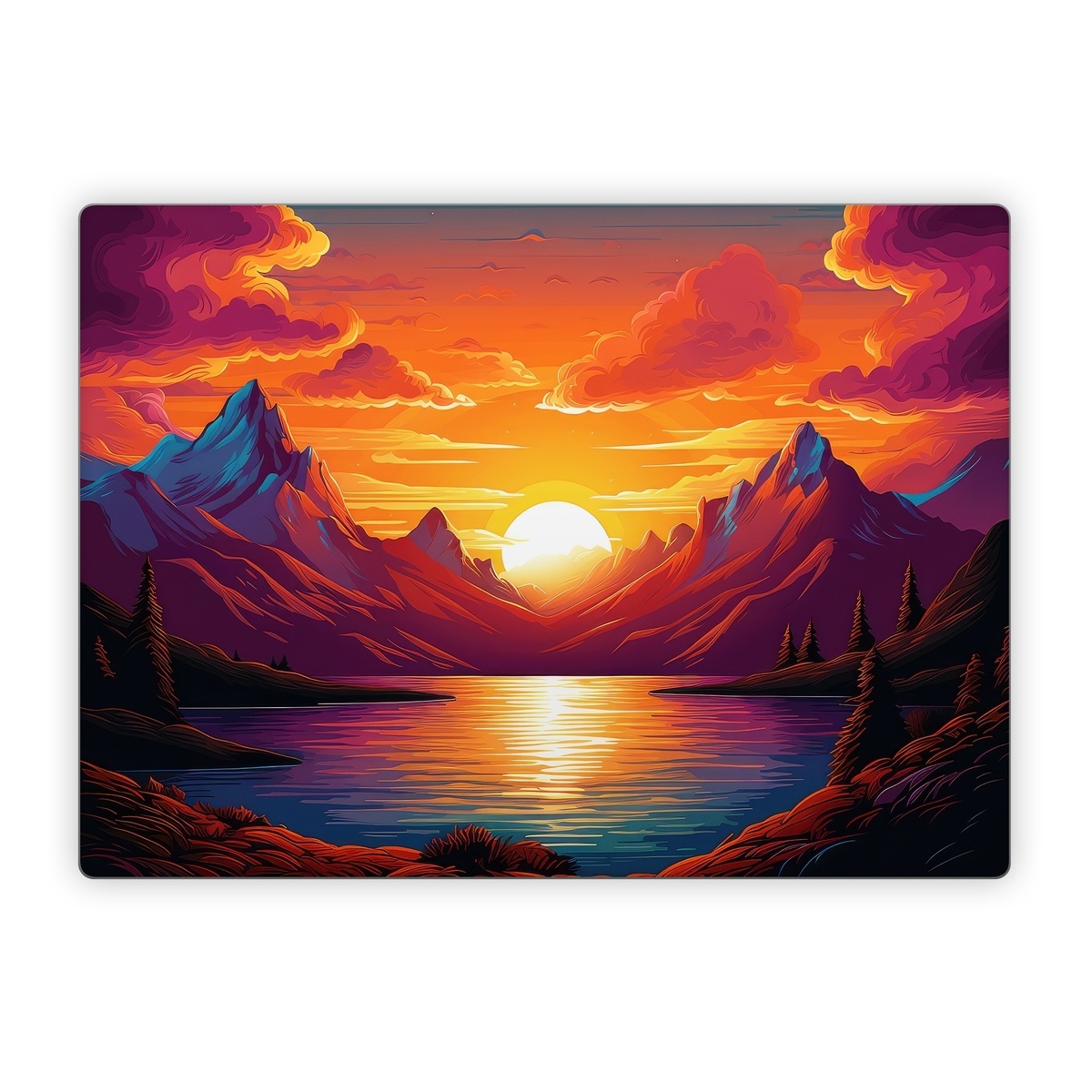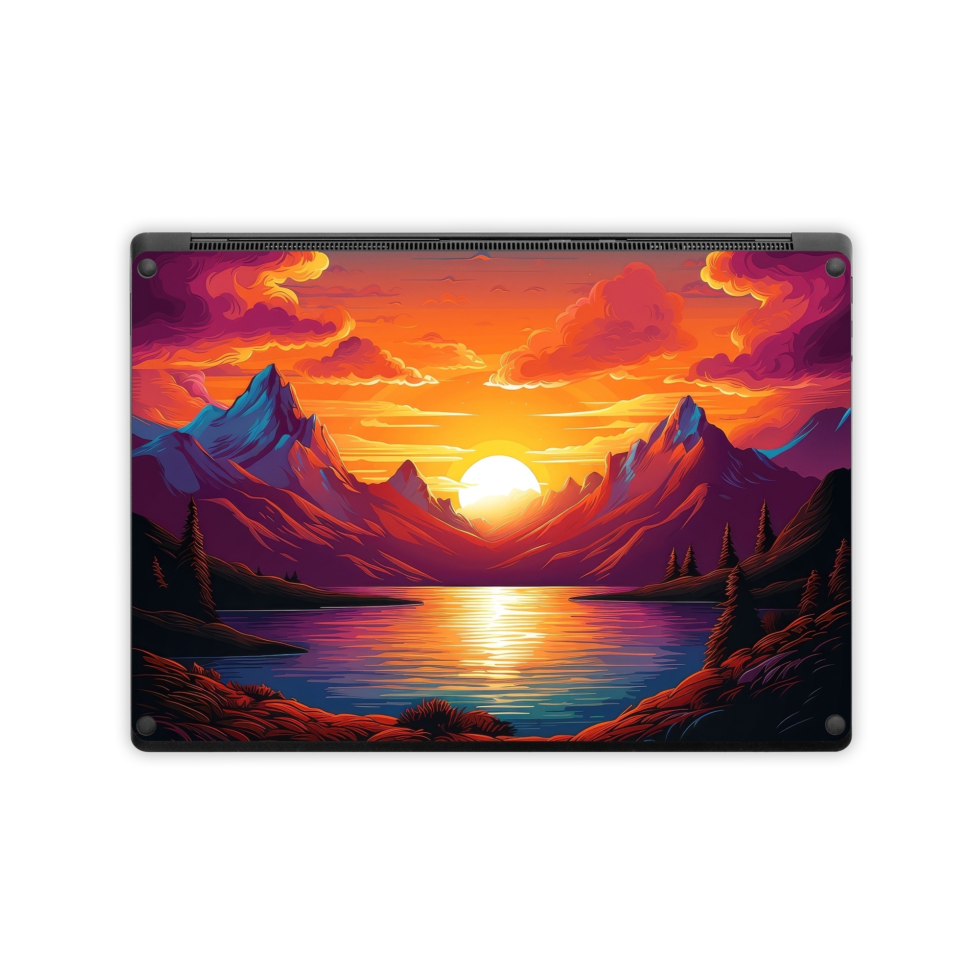 iStyles Microsoft Surface Laptop Series Skin design of Water, Cloud, Sky, Ecoregion, Afterglow, Light, World, Nature, Natural landscape, Mountain, with red, orange, yellow, blue, purple colors, and tagged with nature, mountain, landscape, clouds, sun, sunset, reflection, lake, sea.