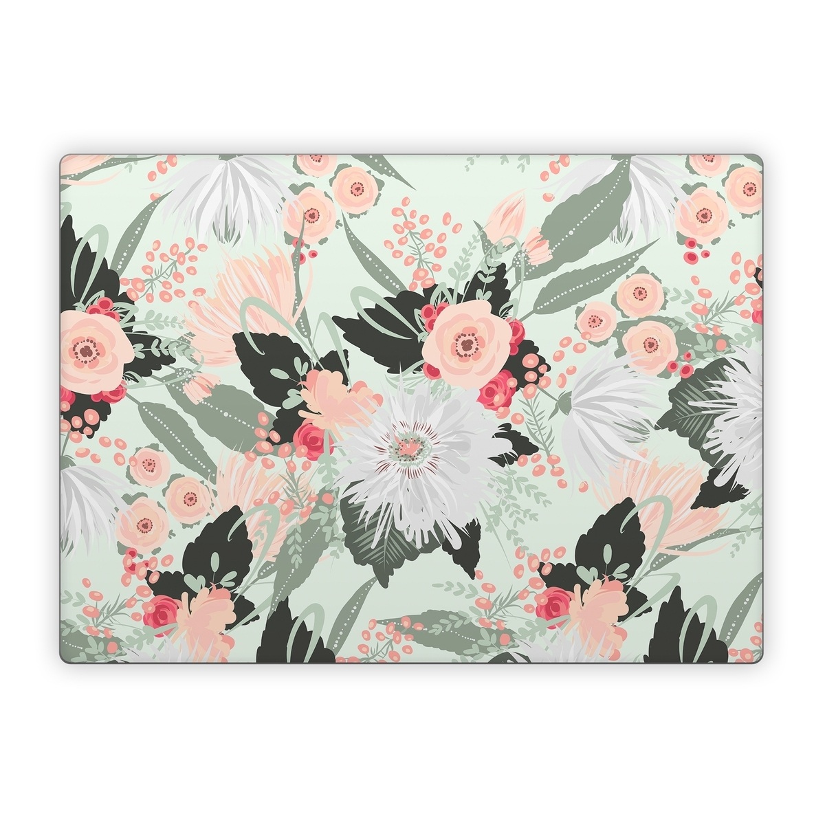 iStyles Microsoft Surface Laptop Series Skin design of Pattern, Pink, Floral design, Design, Textile, Wrapping paper, Plant, Peach, Flower, with green, red, white, pink colors, and tagged with patterns, flowers, nature, bouquet, filigree, floral, flower, flowers, leaf, leaves, pastel.