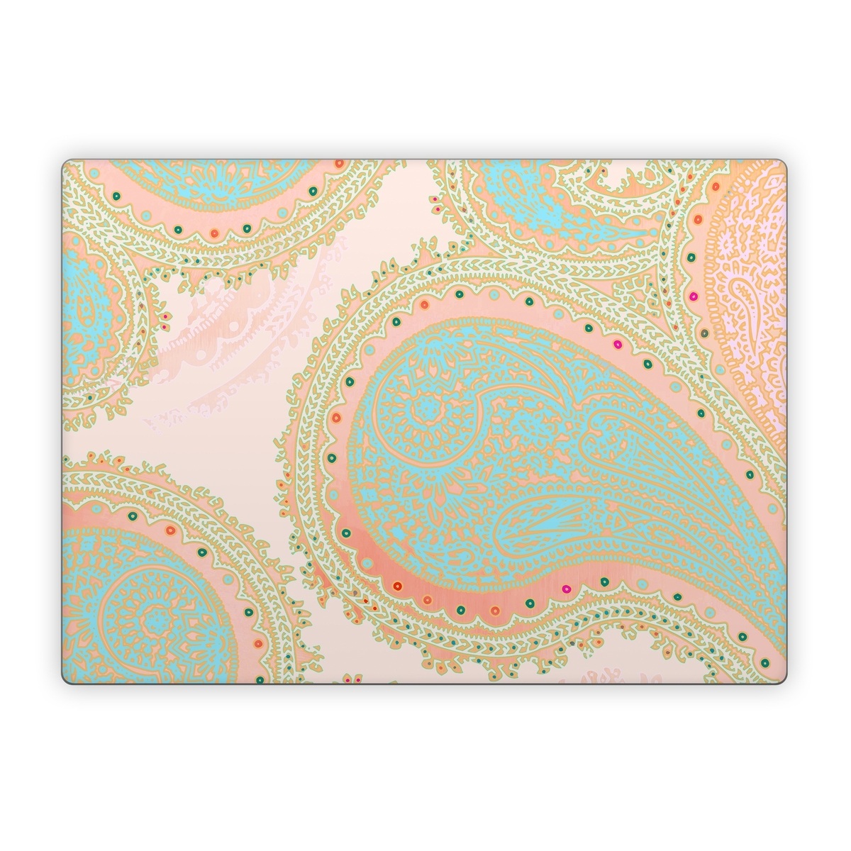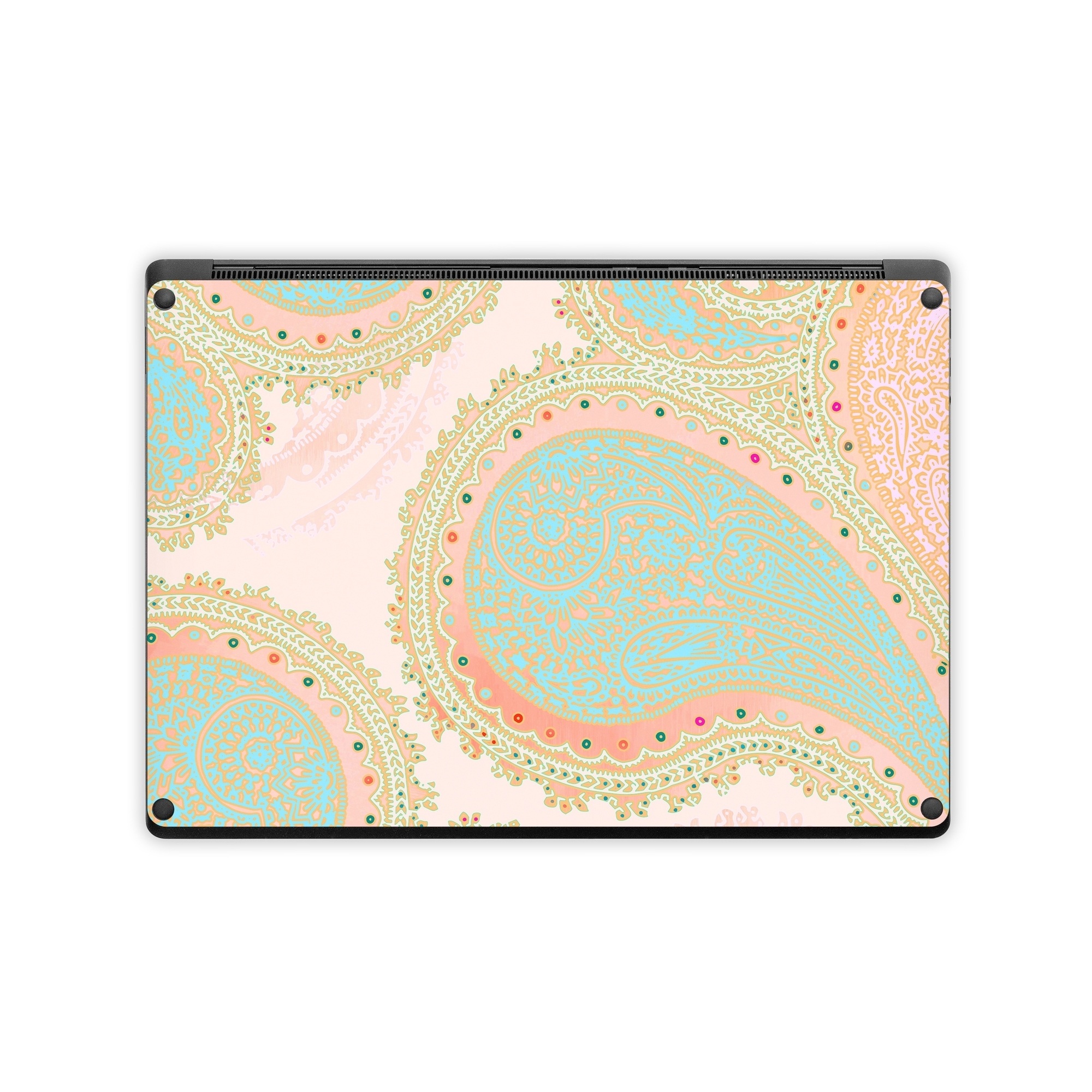 iStyles Microsoft Surface Laptop Series Skin design of Pattern, Visual arts, Paisley, Pink, Design, Motif, Line, Wallpaper, Peach, with pink, blue, red colors, and tagged with patterns, flowers, brightcolors, girly, paisley, pattern, pink.