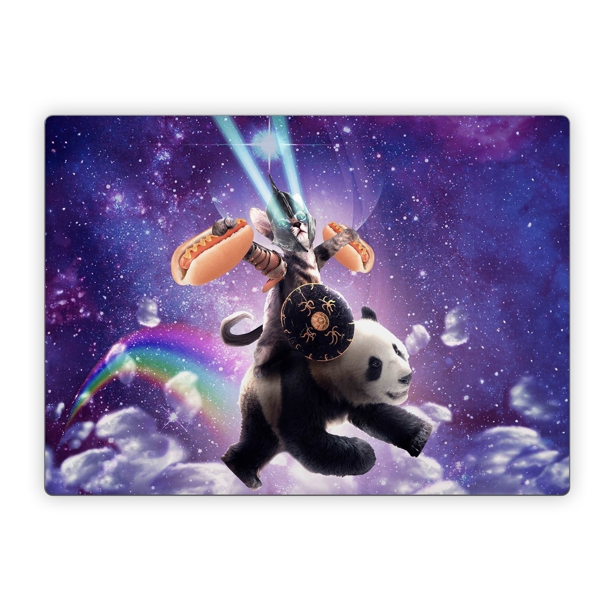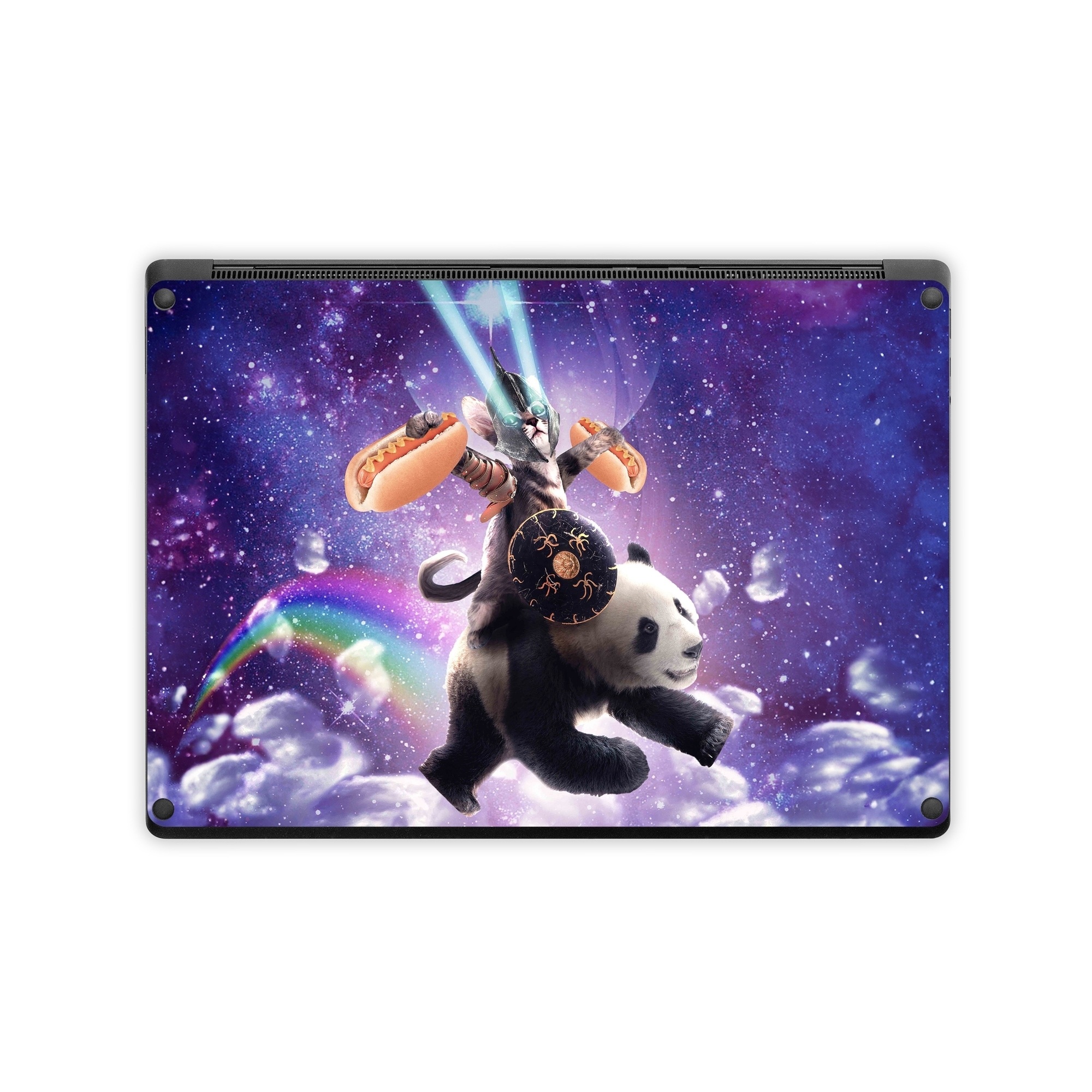 iStyles Microsoft Surface Laptop Series Skin design of Bear, Illustration, Outer space, Animated cartoon, Graphic design, Teddy bear, Space, Sky, Graphics, Fictional character, with black, white, blue, brown, gray, red, yellow, green, pink colors, and tagged with space, animals, fantasy, animals, funny, galaxy, lasers, random, space, weird.