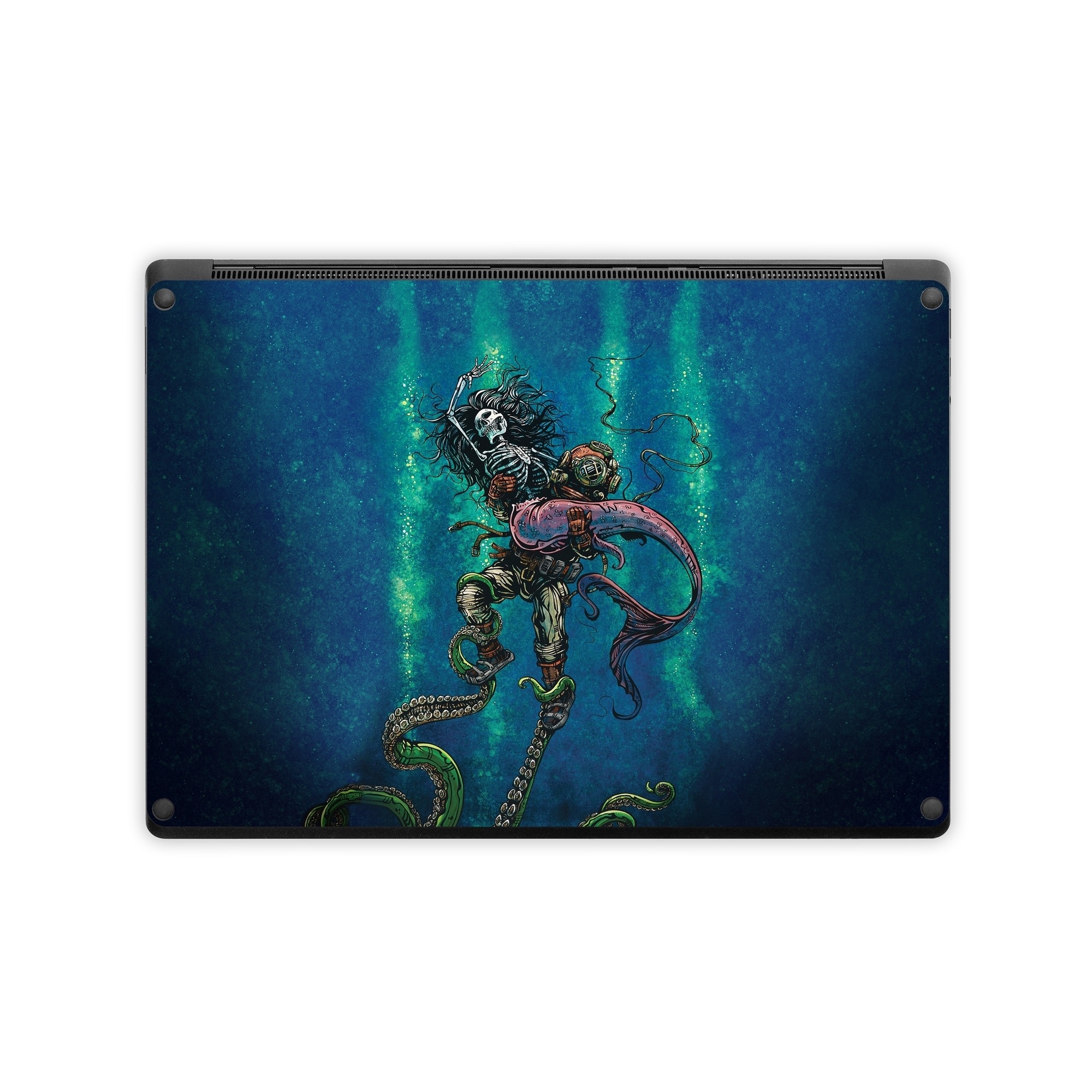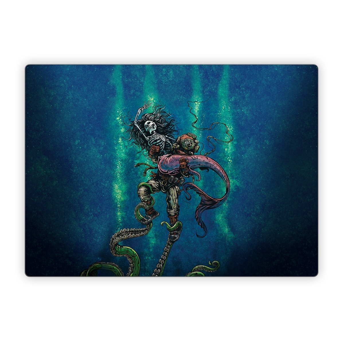 iStyles Microsoft Surface Laptop Series Skin design of Water, Fluid, Underwater, Marine invertebrates, Marine biology, Electric blue, Liquid, Recreation, Underwater diving, Art, with blue, green, orange, purple, pink, black, white, gray colors, and tagged with skulls, animals, fish, octopus.