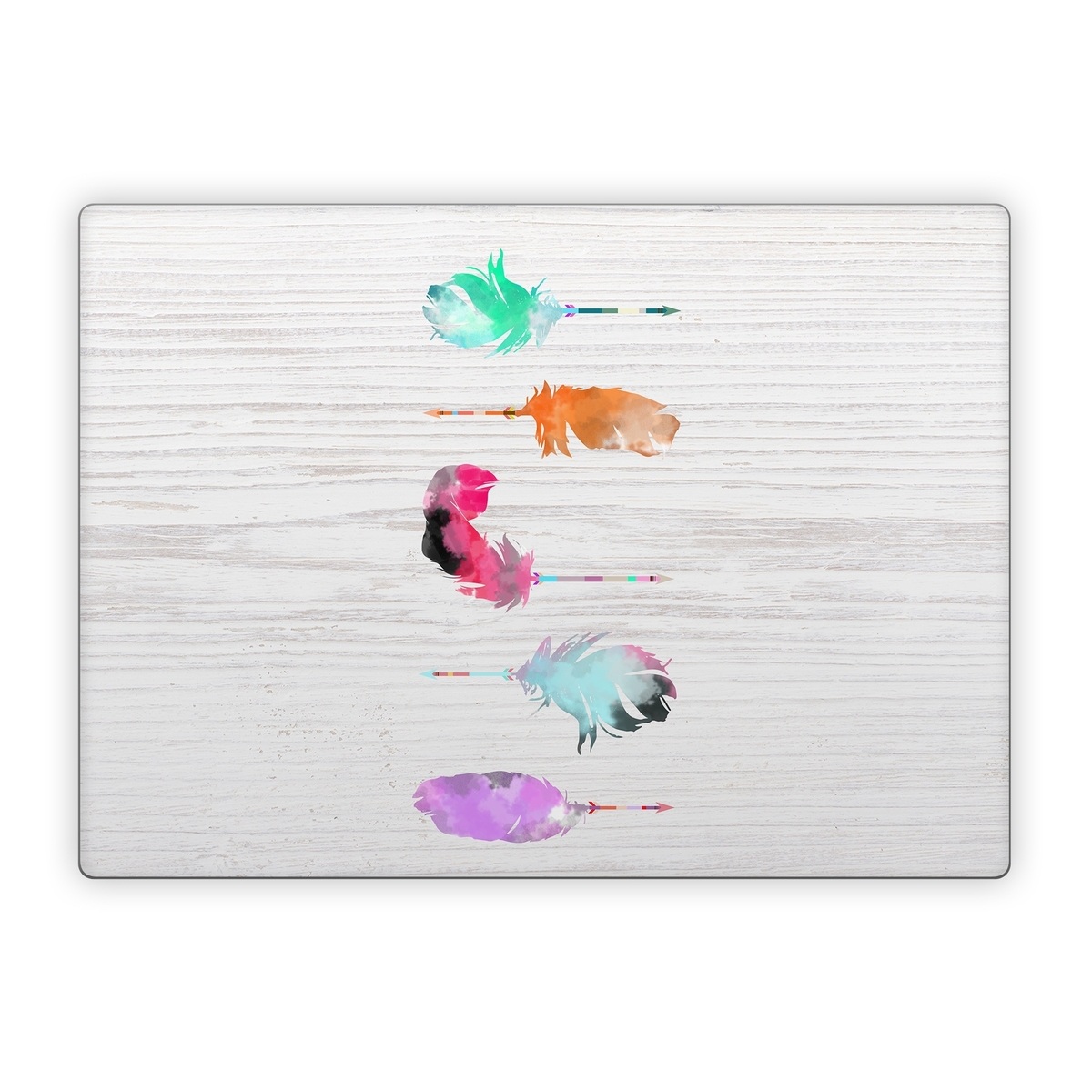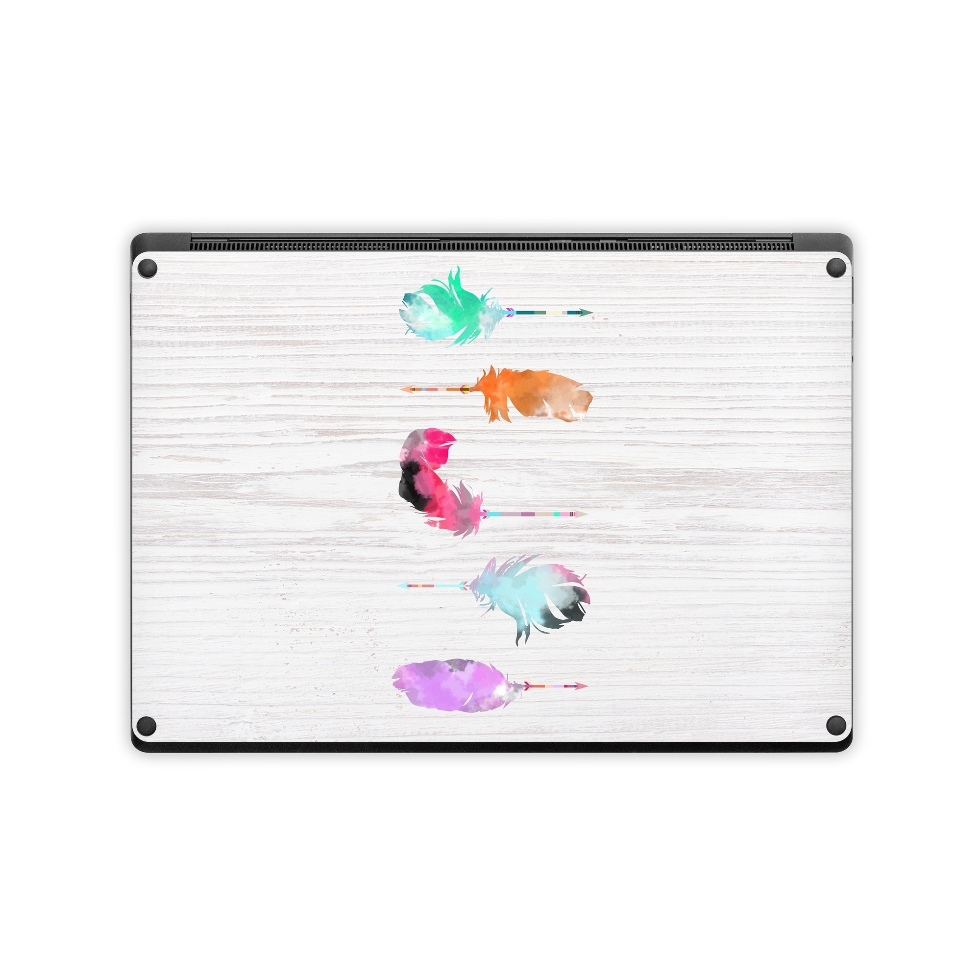iStyles Microsoft Surface Laptop Series Skin design of Pink, Watercolor paint, Illustration, Feather, Design, Art, Painting, Graphic design, Visual arts, Drawing, with white, orange, red, blue, pink, purple, green colors, and tagged with patterns, objects.