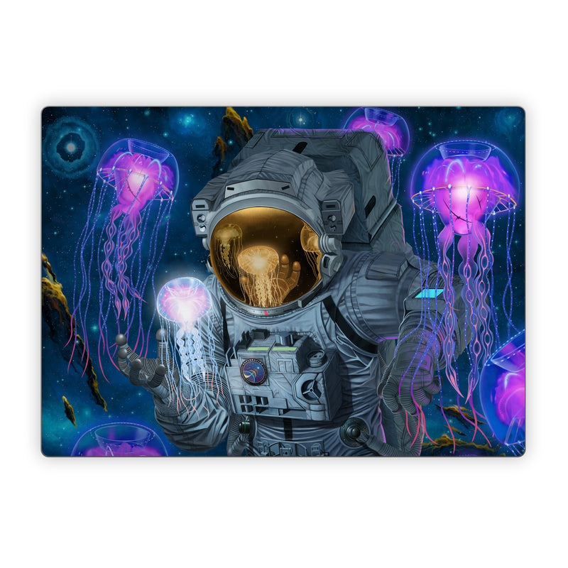 iStyles Microsoft Surface Laptop Series Skin design of Light, Blue, Purple, World, Astronaut, Art, Astronomical object, Space, Cg artwork, Electric blue, with black, blue, gray, white, purple, yellow, red, brown colors, and tagged with fantasy, space, people, objects, animals, astronaut, jellyfish, stars, space, suit.