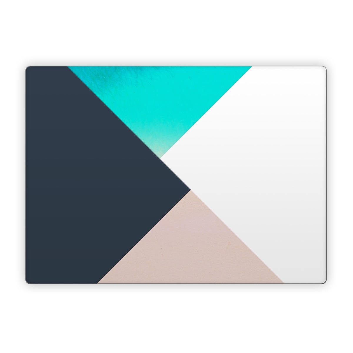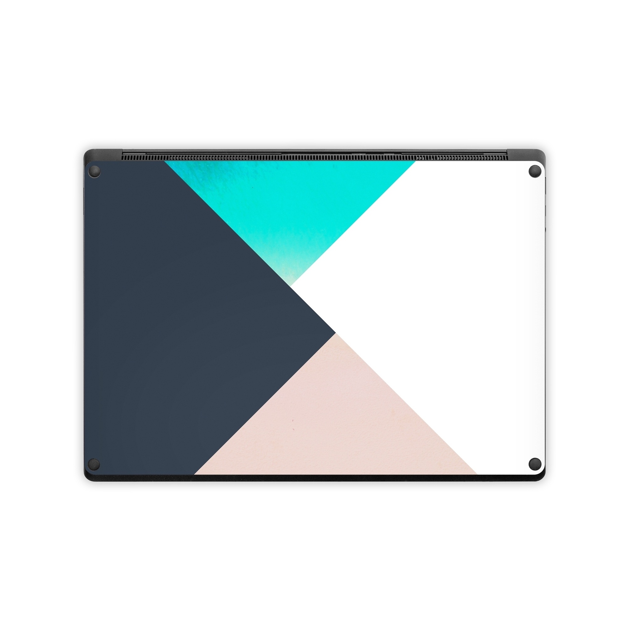iStyles Microsoft Surface Laptop Series Skin design of Blue, Turquoise, Aqua, Line, Triangle, Design, Material property, Graphic design, Pattern, Architecture, with black, white, brown, blue colors, and tagged with patterns, block, blocking, color, colorblock, geometric, shape, simple.