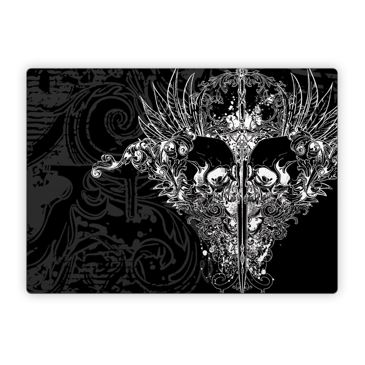 iStyles Microsoft Surface Laptop Series Skin design of Illustration, Art, Design, Monochrome, Graphic design, Pattern, Fictional character, Skull, Black-and-white, Graphics, with black, gray colors, and tagged with fantasy, patterns, objects.