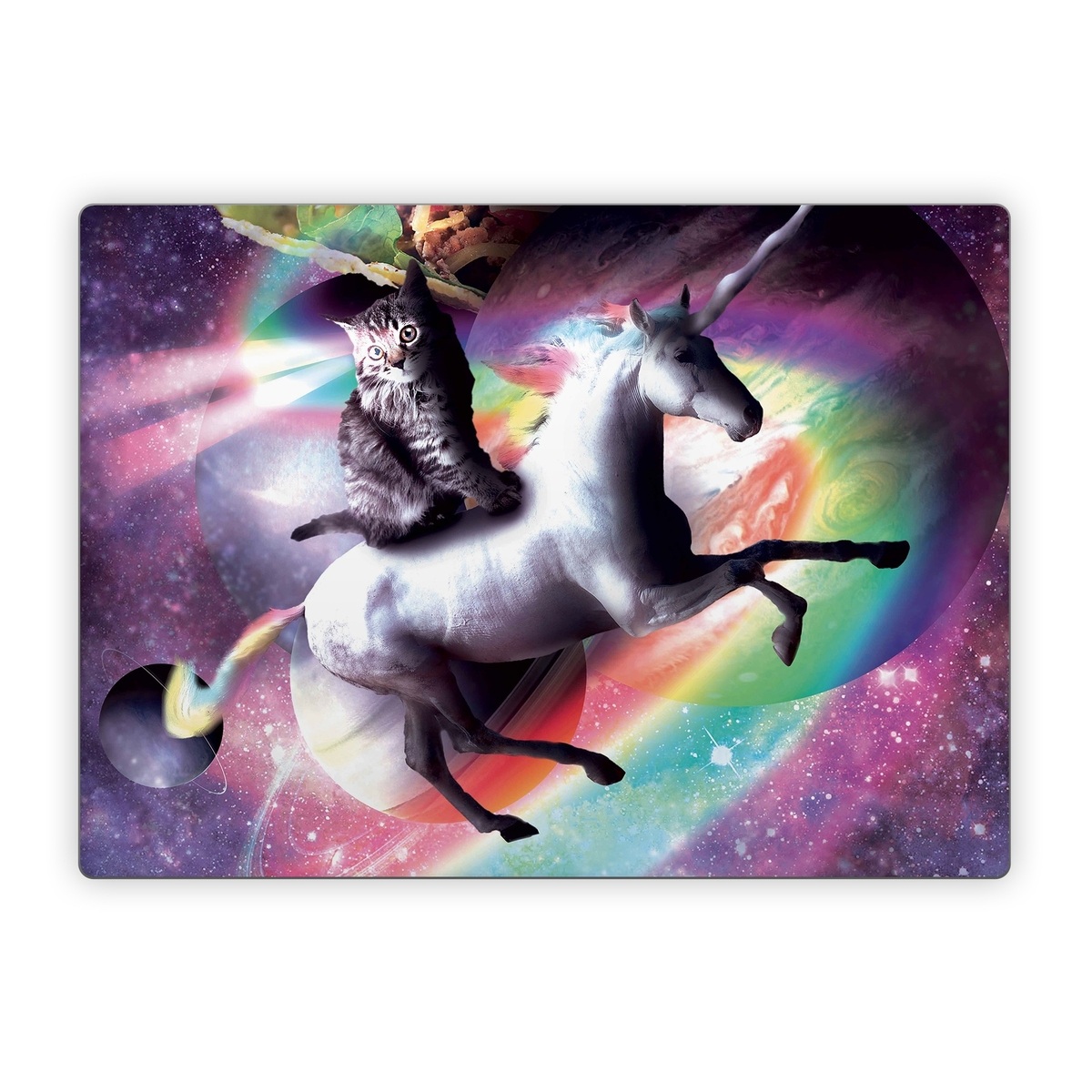 iStyles Microsoft Surface Laptop Series Skin design of Illustration, Graphic design, Fictional character, Space, Sky, Astronomical object, Universe, Outer space, Art, Unicorn, with black, white, gray, red, yellow, green, blue, orange colors, and tagged with space, animals, fantasy, animals, funny, galaxy, lasers, random, space, weird.