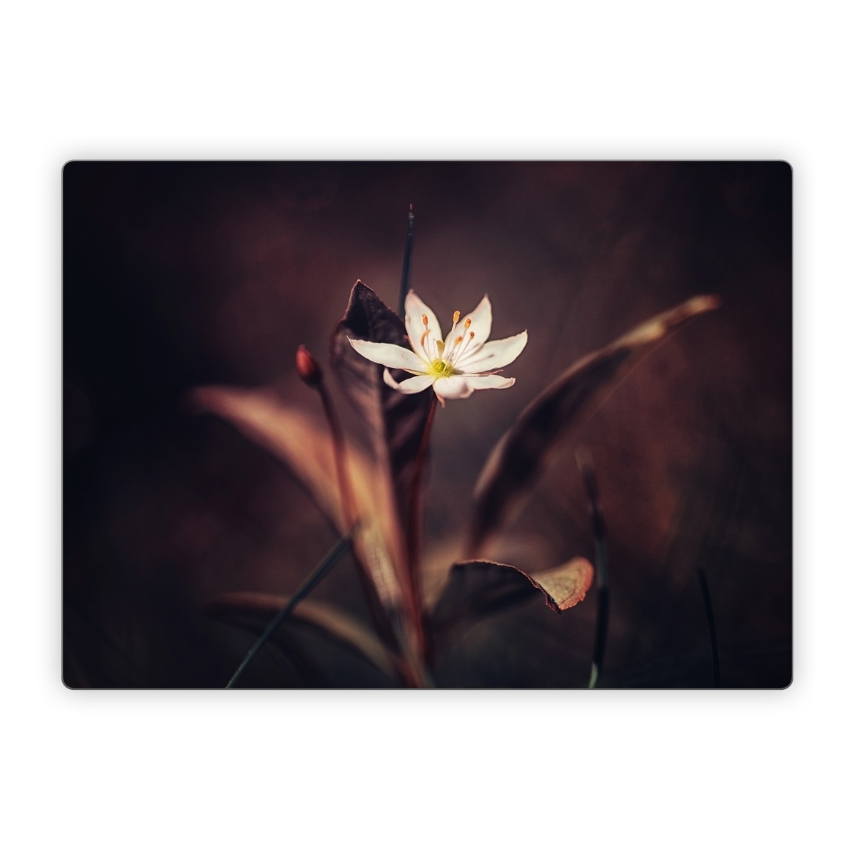 iStyles Microsoft Surface Laptop Series Skin design of Flower, Yellow, Light, Plant, Sky, Still life photography, Wildflower, Petal, Darkness, Spring, with black, red colors, and tagged with nature, flowers.
