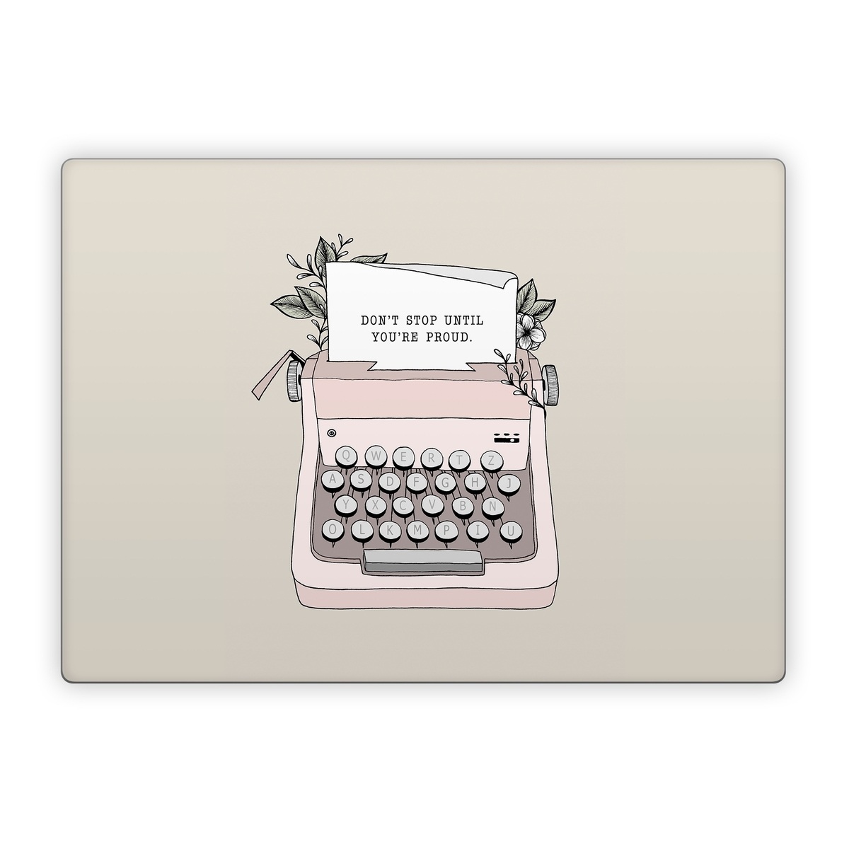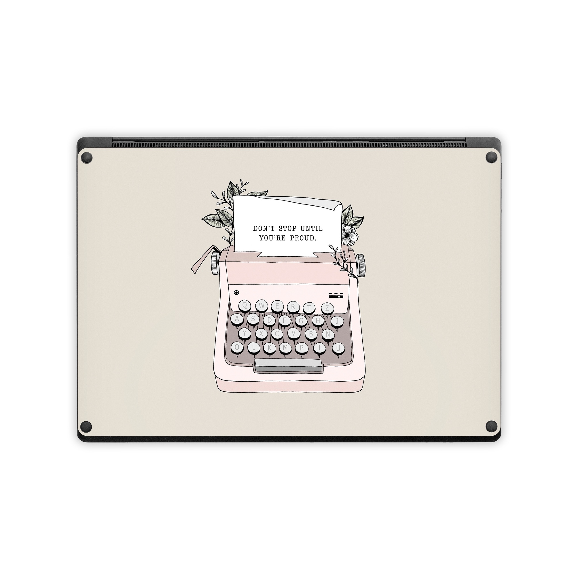 iStyles Microsoft Surface Laptop Series Skin design of Typewriter, Office equipment, Space bar, Office supplies, Illustration, with black, white, pink colors, and tagged with objects, flowers, filigree, flower, flowers, pastel, sketch.