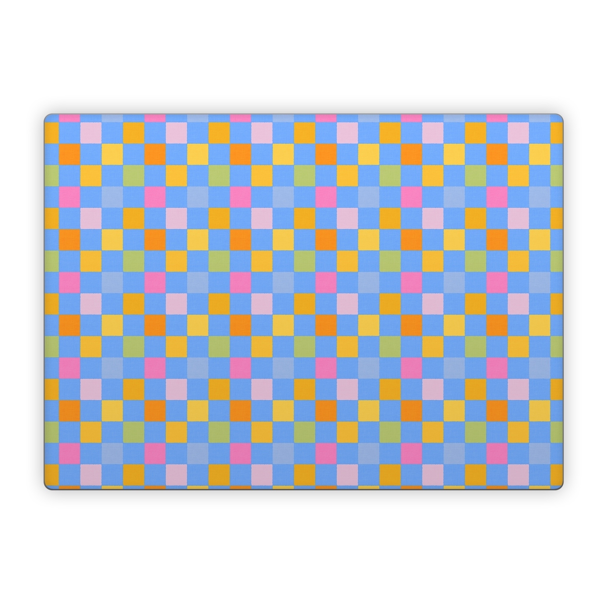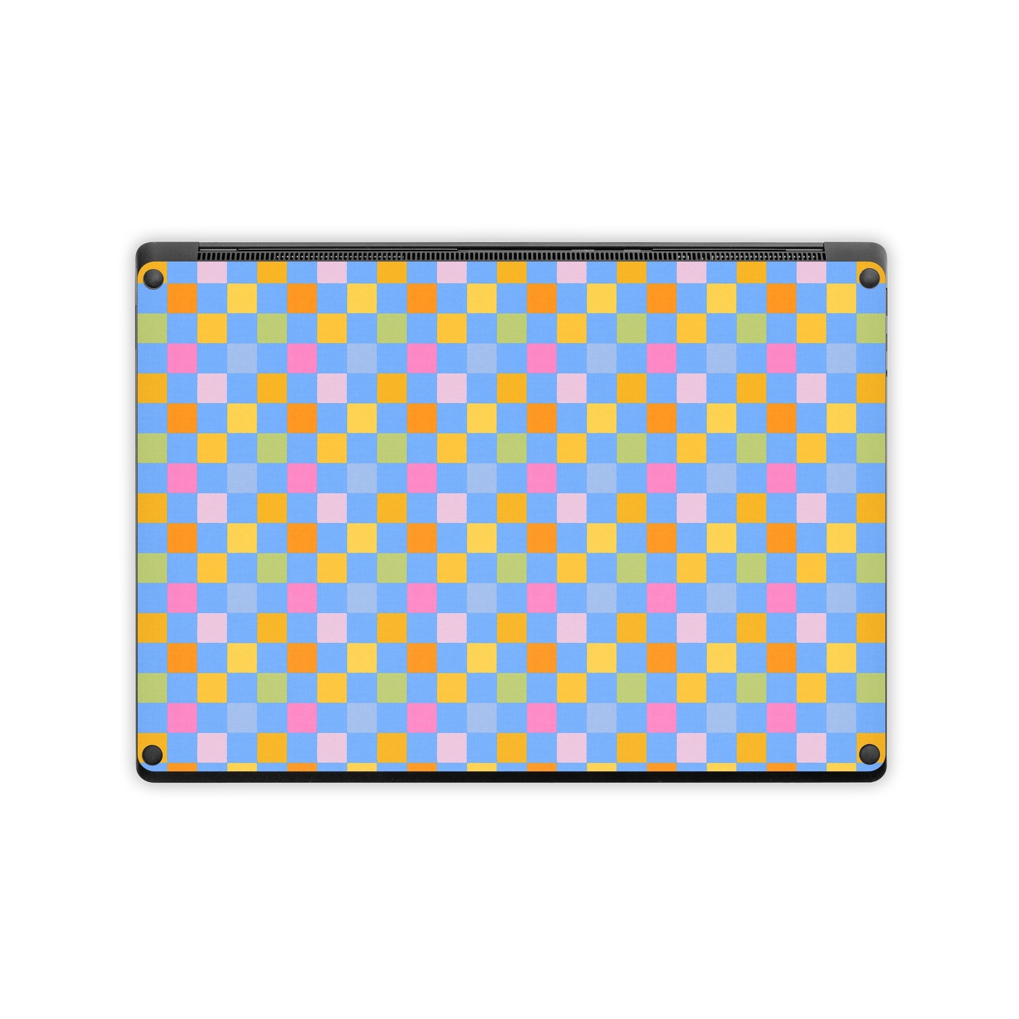 iStyles Microsoft Surface Laptop Series Skin design of Rectangle, Azure, Textile, Orange, Aqua, Font, Symmetry, Magenta, Tints and shades, Parallel, with blue, yellow, orange, green, pink colors, and tagged with patterns, checkered, squares, colorful.