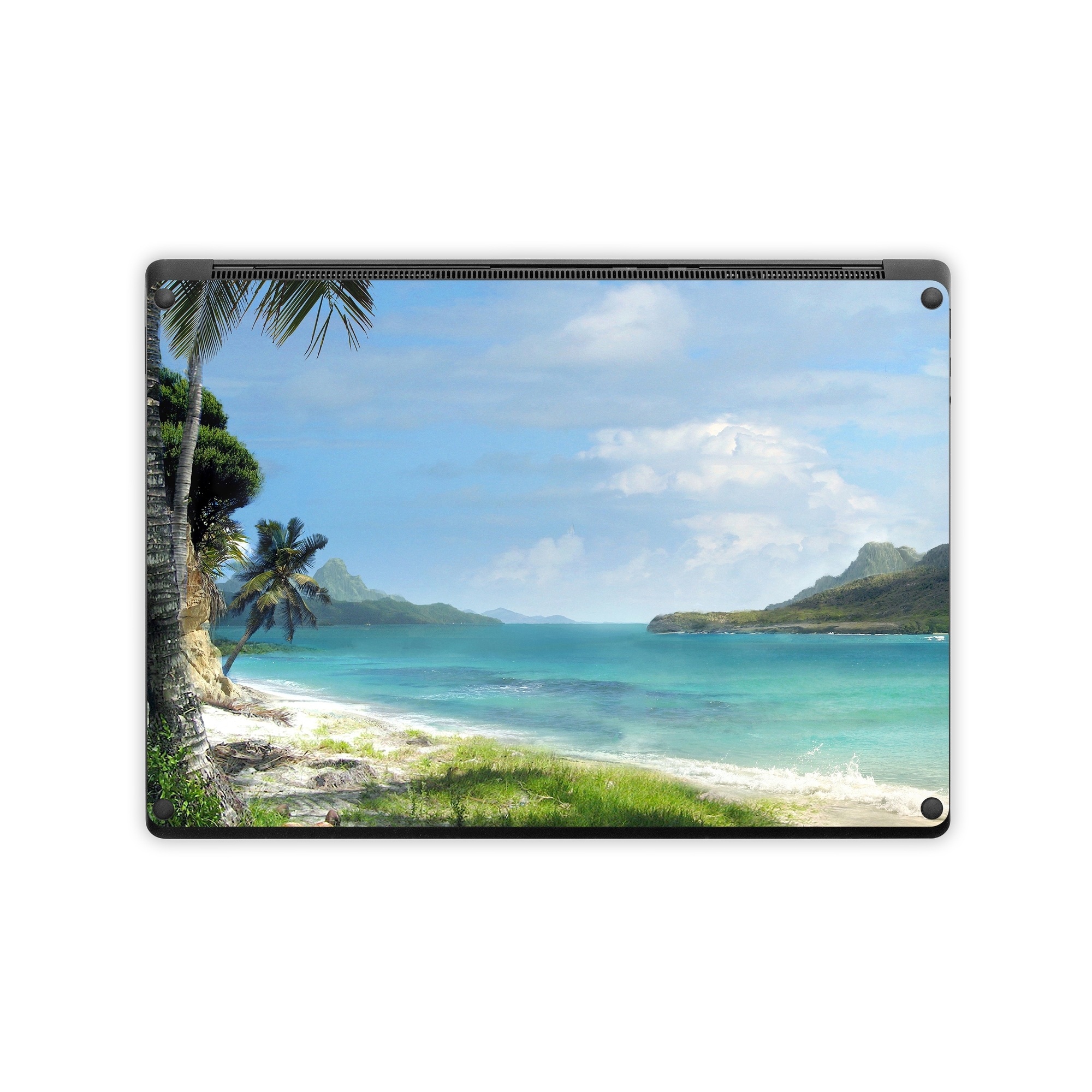iStyles Microsoft Surface Laptop Series Skin design of Body of water, Tropics, Nature, Natural landscape, Shore, Coast, Caribbean, Sea, Tree, Beach, with gray, black, blue, green colors, and tagged with nature, fineart.