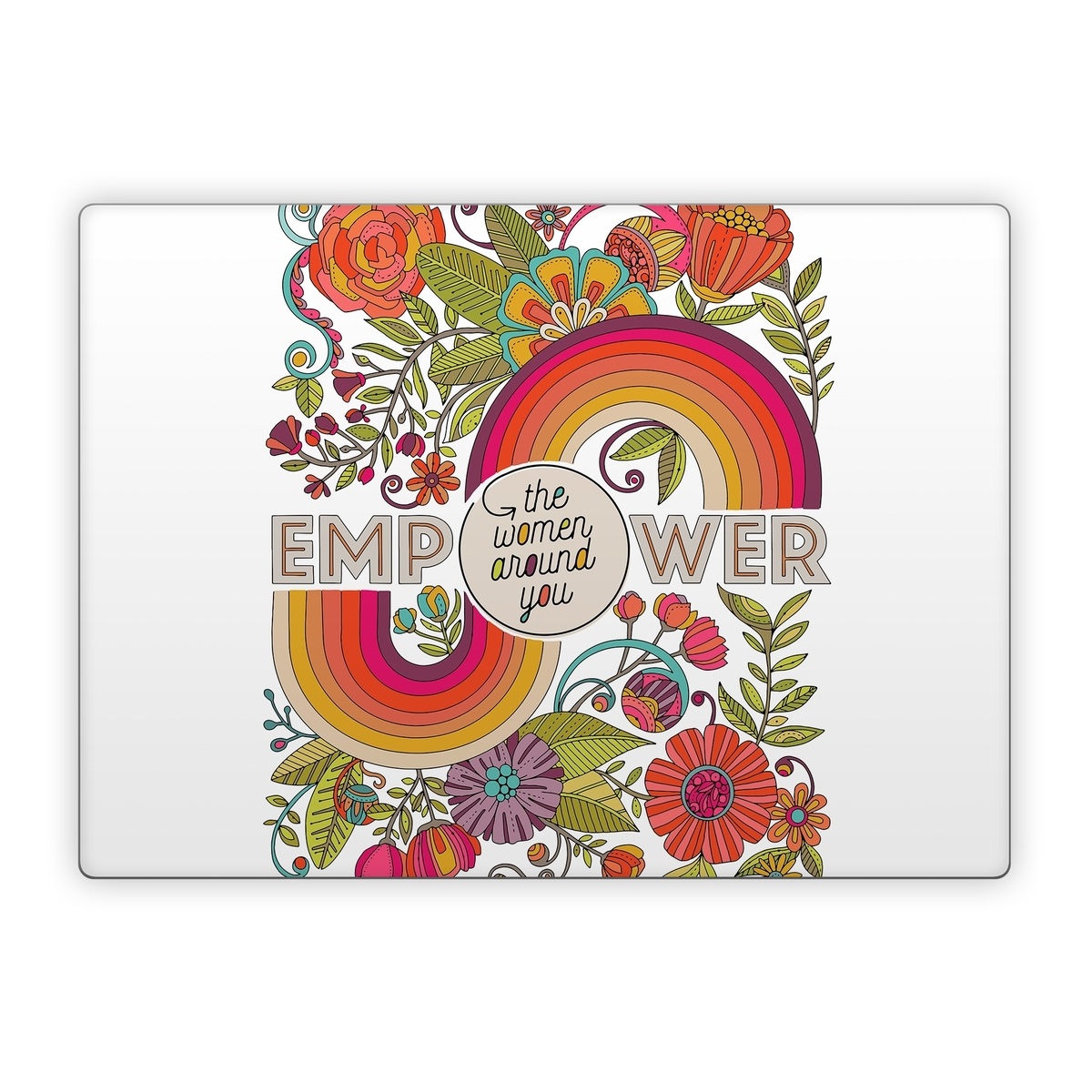 iStyles Microsoft Surface Laptop Series Skin design of Botany, Flower, Font, Creative arts, Petal, Circle, Pattern, Art, Visual arts, Floral design, with white, red, yellow, orange, green, blue colors, and tagged with flowers, signs, flowers, rainbow, empower, women, around, you.