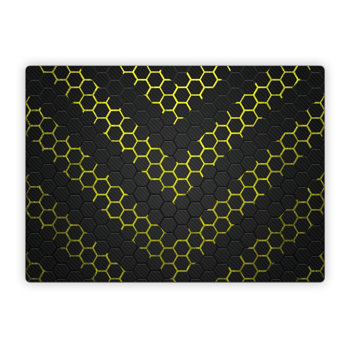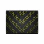 iStyles Microsoft Surface Laptop Series Skin design of Black, Pattern, Yellow, Mesh, Net, Chain-link fencing, Design, Metal, with black, gray, yellow colors, and tagged with lookslike, space, fantasy, animals, drones, geometric, hexagon, tech.