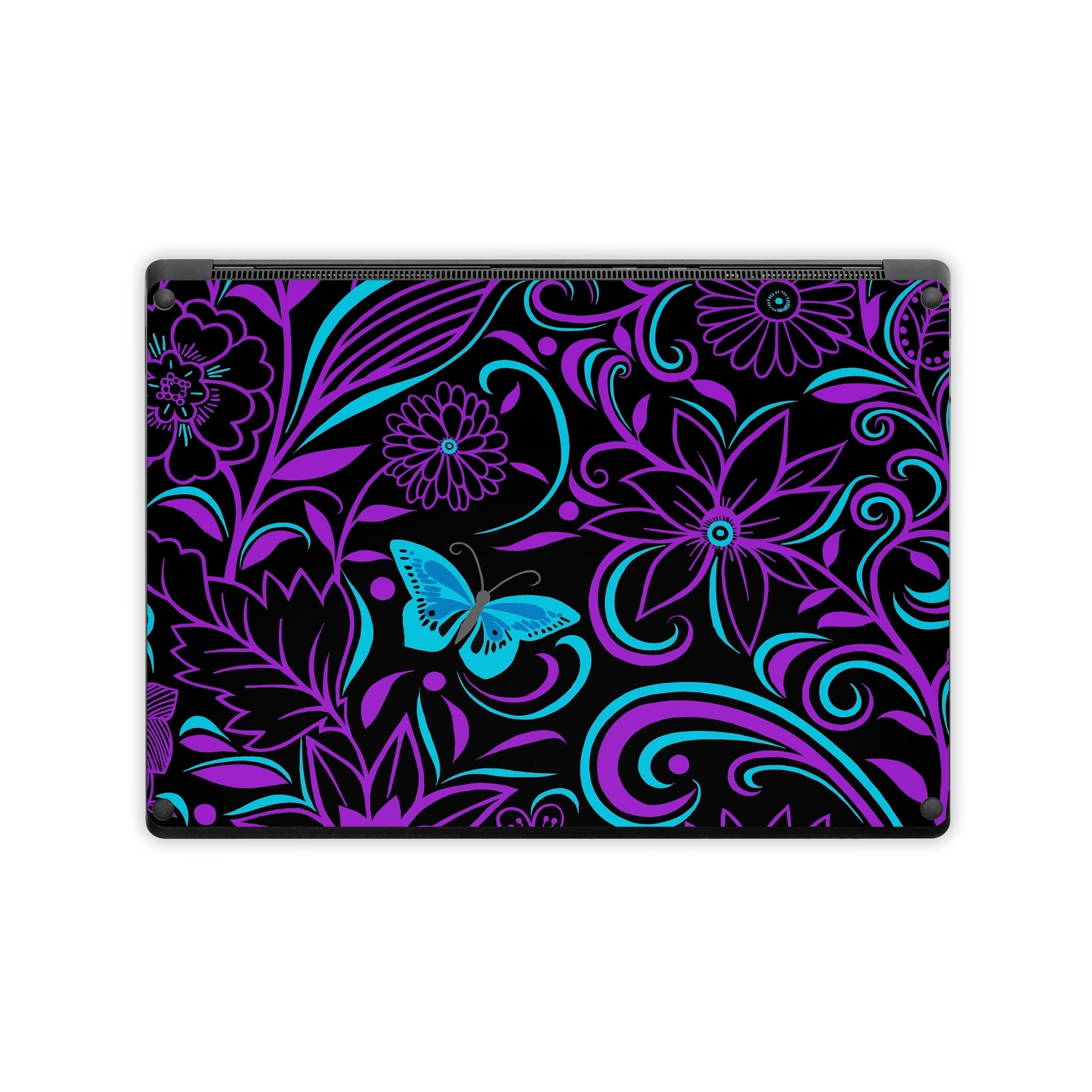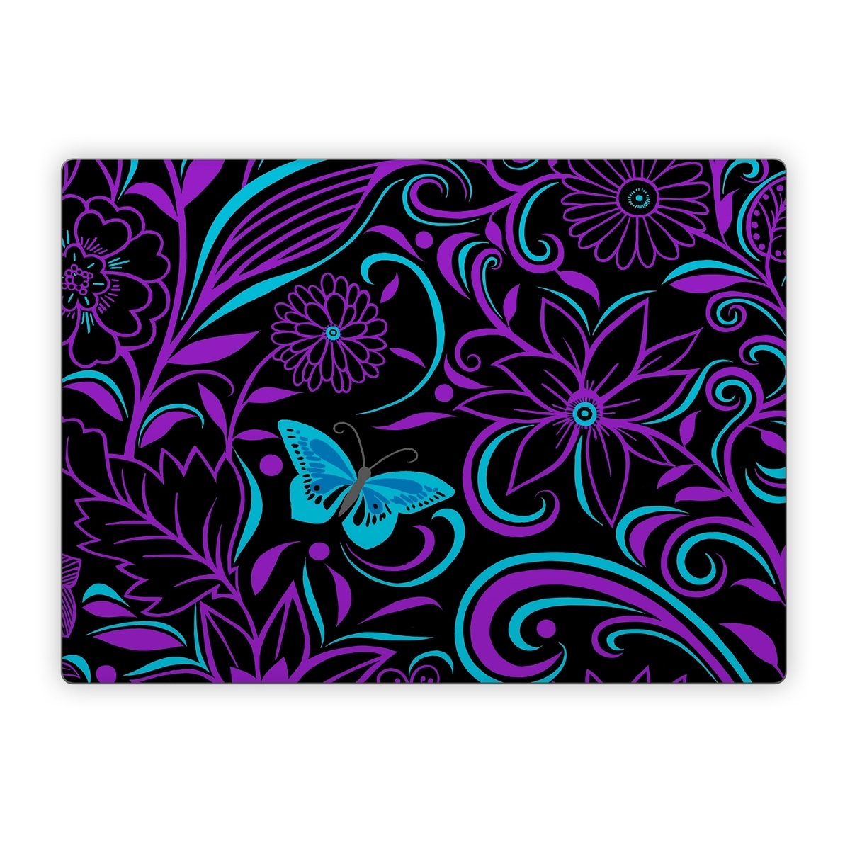 iStyles Microsoft Surface Laptop Series Skin design of Pattern, Purple, Violet, Turquoise, Teal, Design, Floral design, Visual arts, Magenta, Motif, with black, purple, blue colors, and tagged with flowers, patterns.