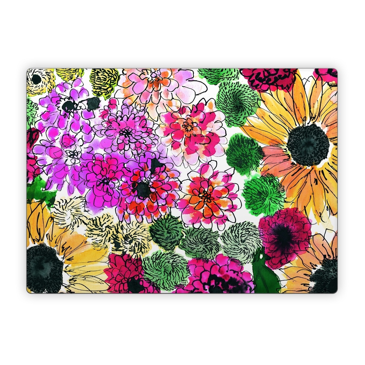 iStyles Microsoft Surface Laptop Series Skin design of Flower, Floral design, Plant, Gazania, african daisy, Petal, Pattern, Botany, Wildflower, Design, with red, yellow, green, pink, black colors, and tagged with patterns, flowers, bright, colorful, flowers, spring, summer, sunflower, watercolor.