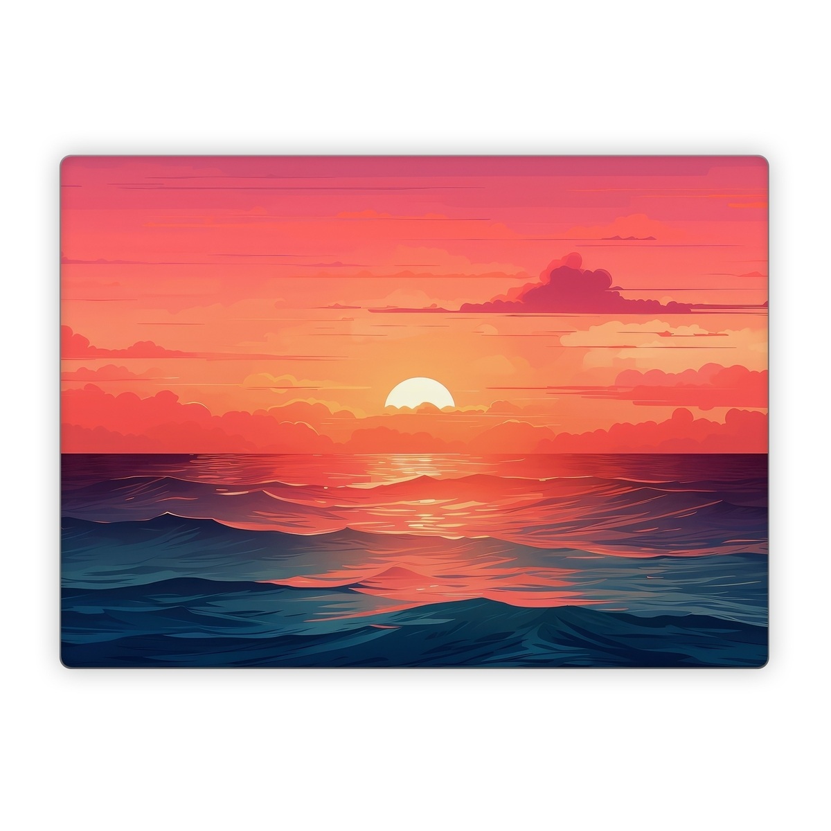 iStyles Microsoft Surface Laptop Series Skin design of Cloud, Sky, Atmosphere, Daytime, Afterglow, Ecoregion, Nature, Dusk, Water, Orange, with blue, red, yellow, orange, pink, black, purple colors, and tagged with nature, sea, landscape, sunset, waves.