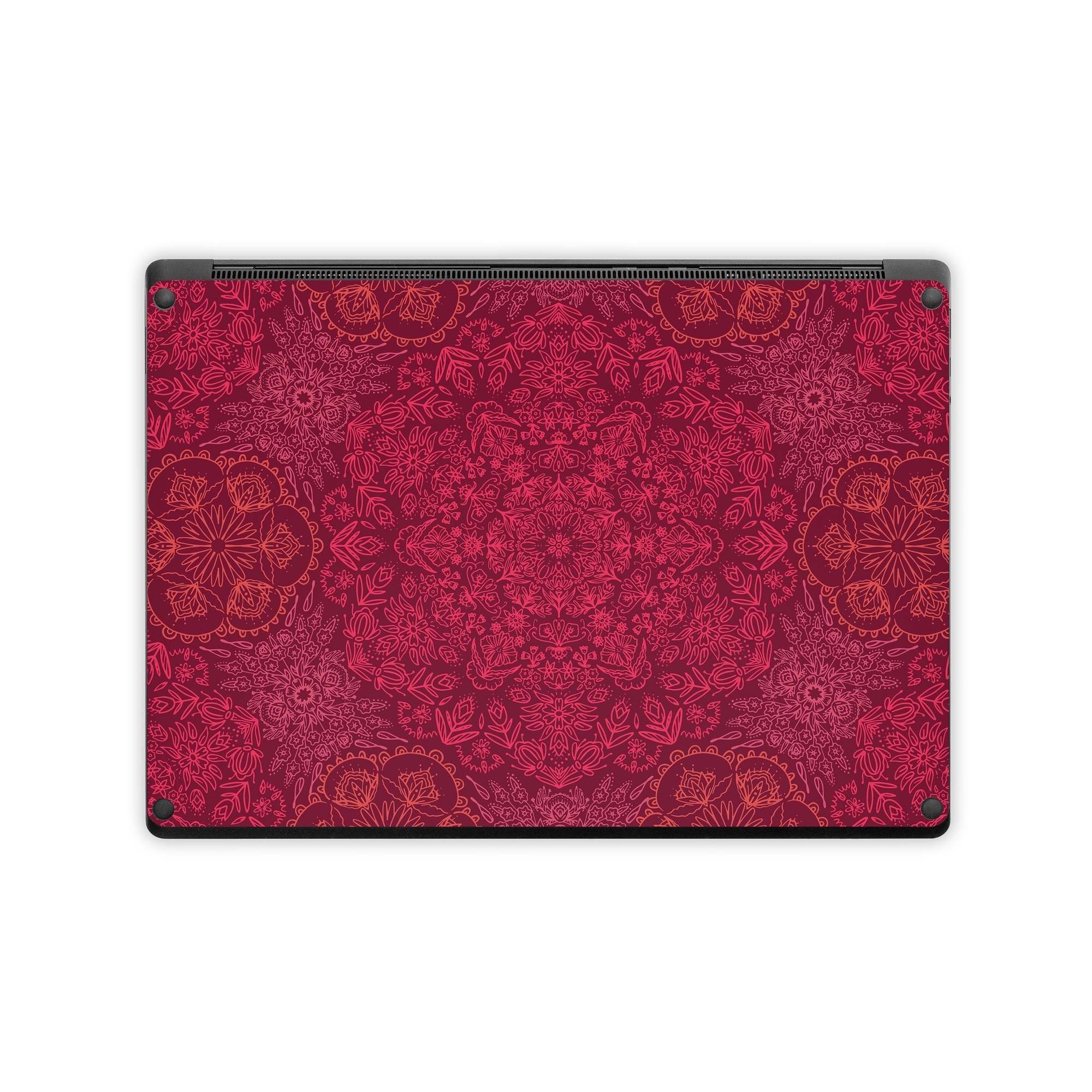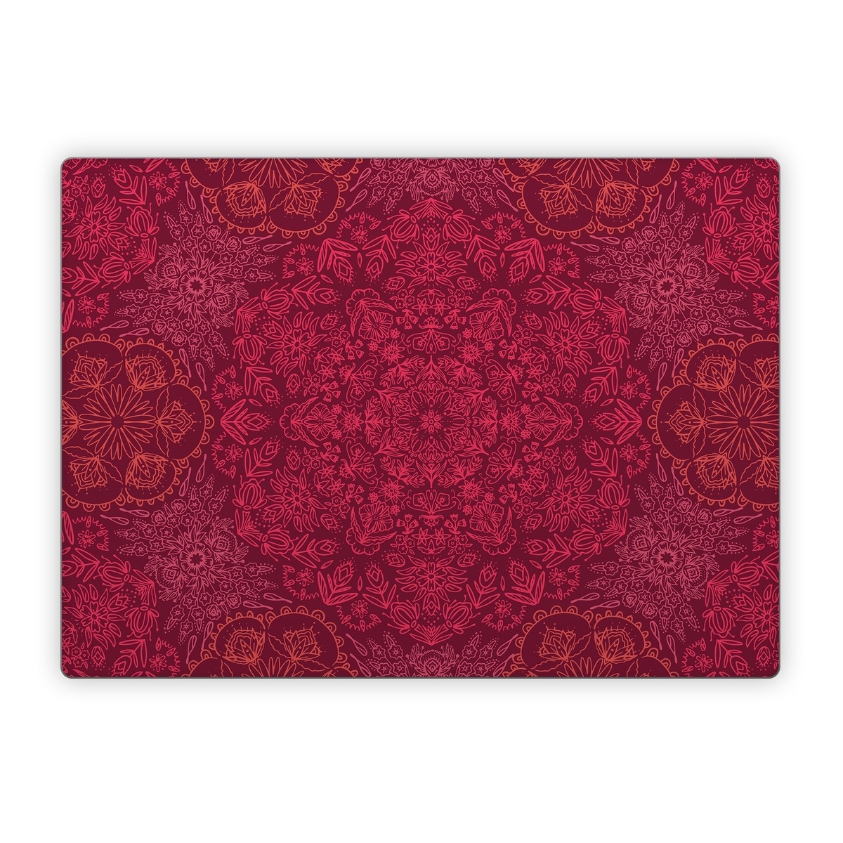 iStyles Microsoft Surface Laptop Series Skin design of Red, Pattern, Pink, Magenta, Purple, Maroon, Violet, Textile, Design, Wallpaper, with red, black colors, and tagged with patterns, flowers, lookslike, floral, flowers, mandala, red, tapestry.