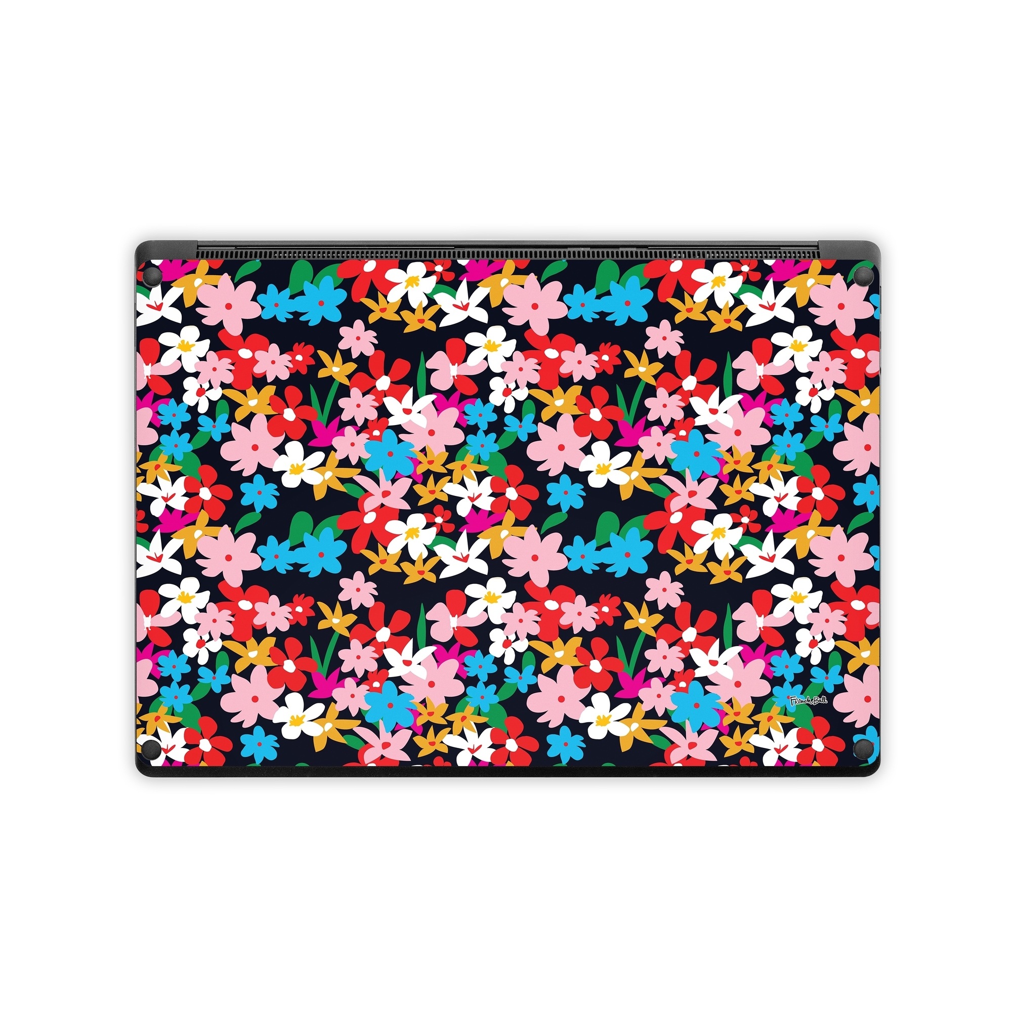 iStyles Microsoft Surface Laptop Series Skin design of Colorfulness, Pattern, Art, Magenta, Rectangle, Event, Petal, Electric blue, Visual arts, with black, red, pink, white, blue, orange, green colors, and tagged with patterns, flowers, bright, color, colorful, colors, floral, flower, flowers, garden, gardening.